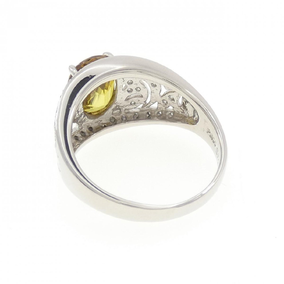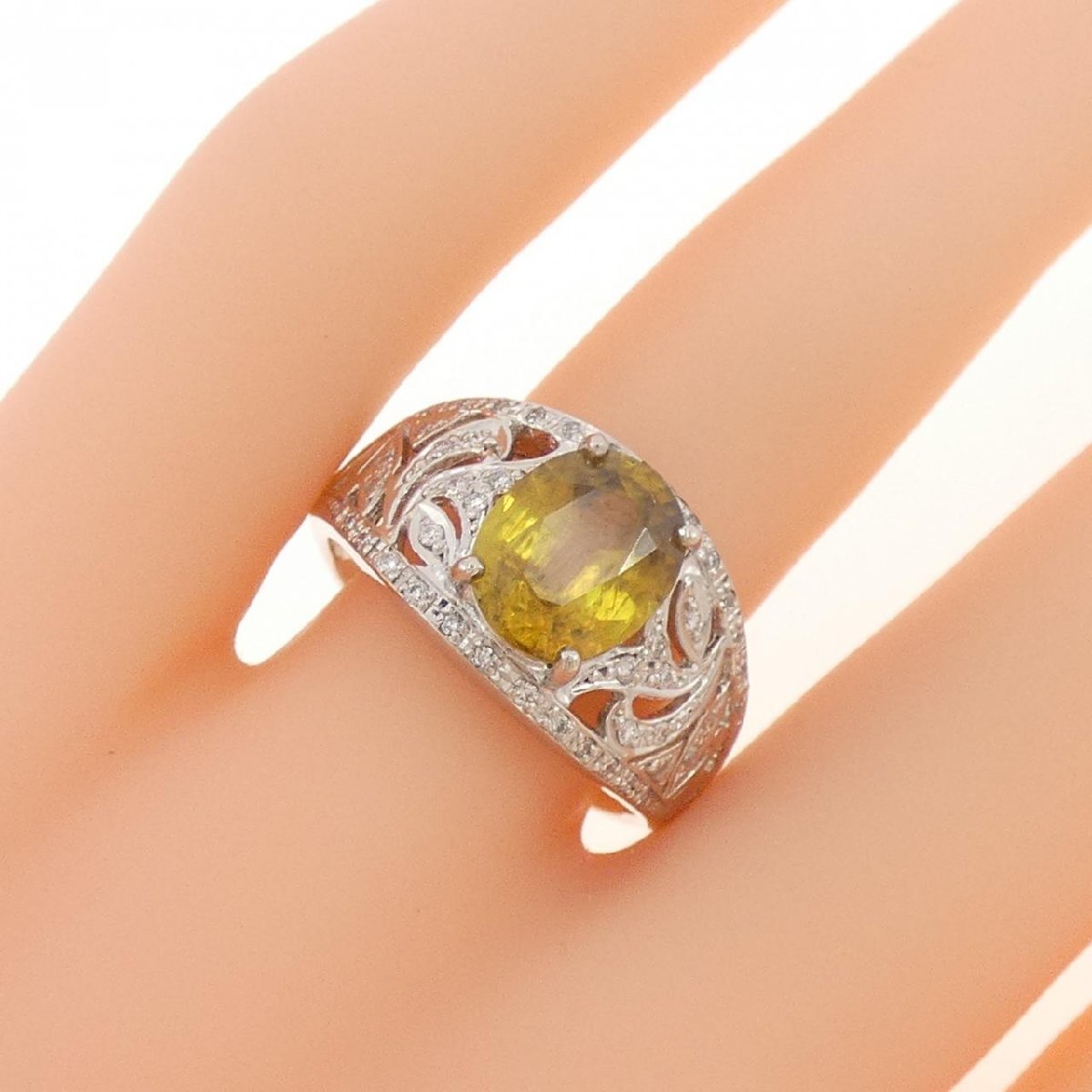 透明感のあるイエローカラーのスフェーンをあしらったリング。 クリアに煌めくダイヤモンドが輝きを添えます。