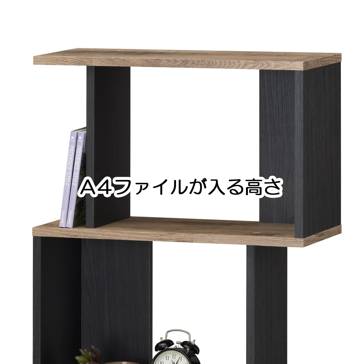 | 特徴 | ●縦でも横でも自由に使える飾り棚です。 ●本棚・CDラック・飾り棚・間仕切りパーテーションとして自由に使えます。 ●縦置きした時の1段の棚はA4ファイルBOXが入る高さです。 |