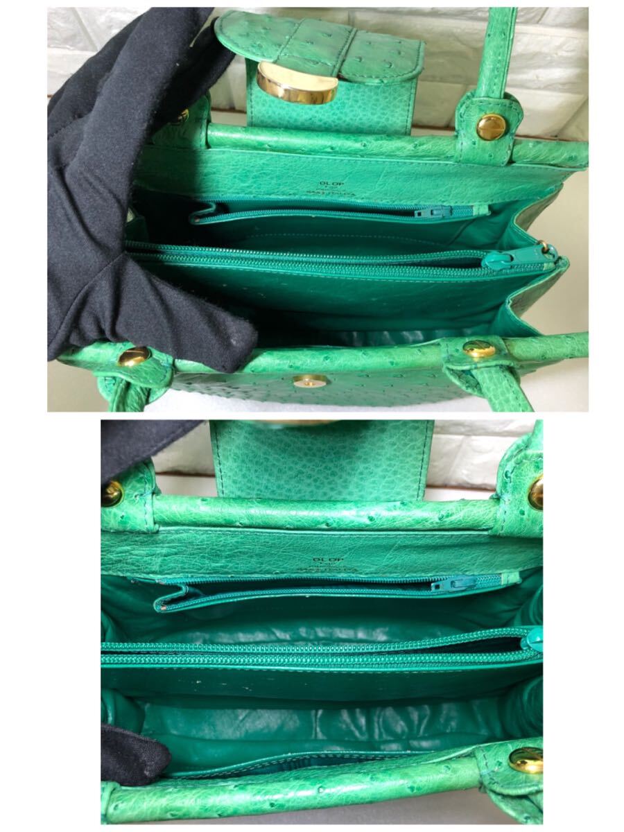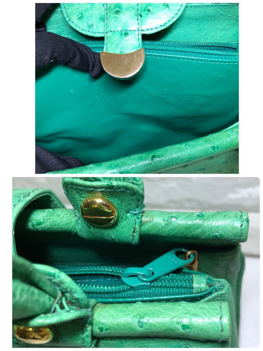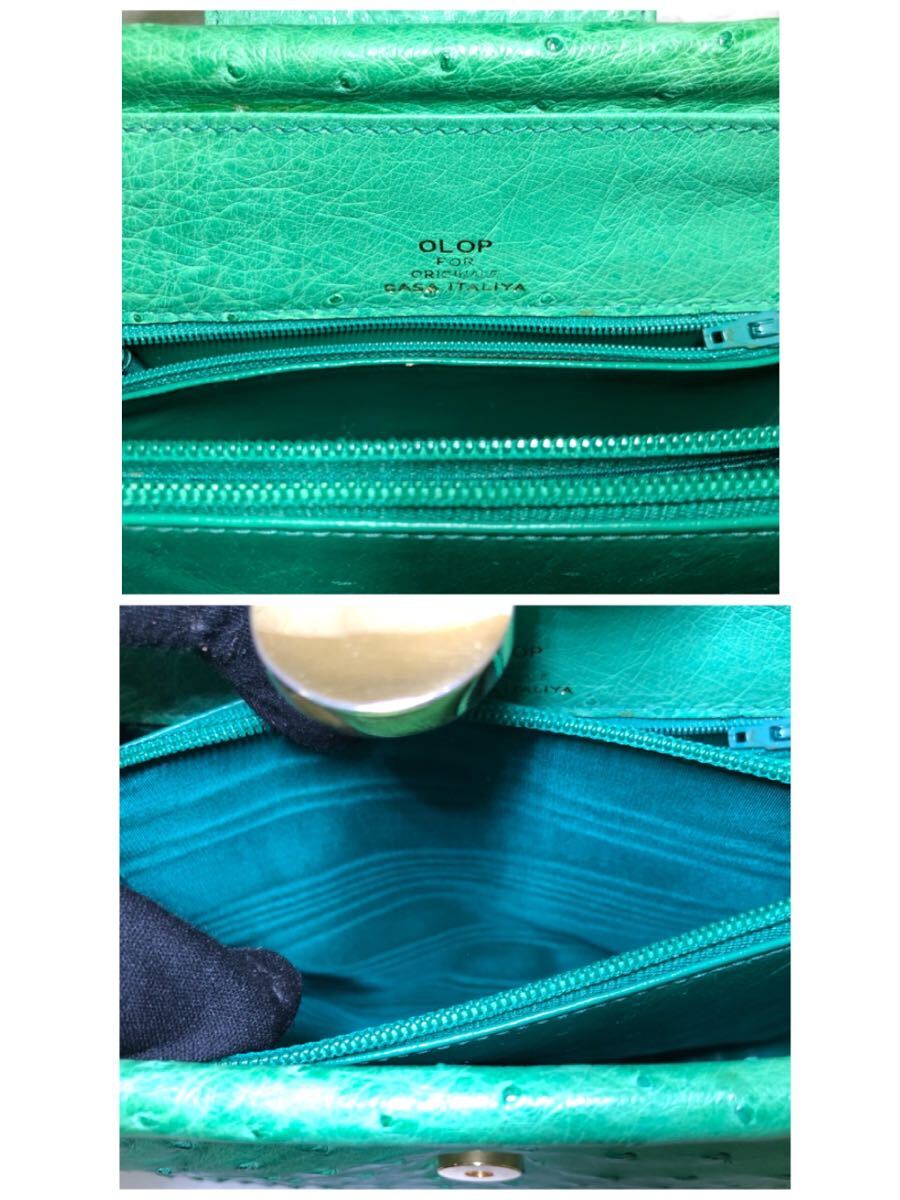 OLOP オロップ オーストリッチ ハンドバッグ ショルダーバッグ レディース グリーン ダチョウ 革製品 革バッグ 本革