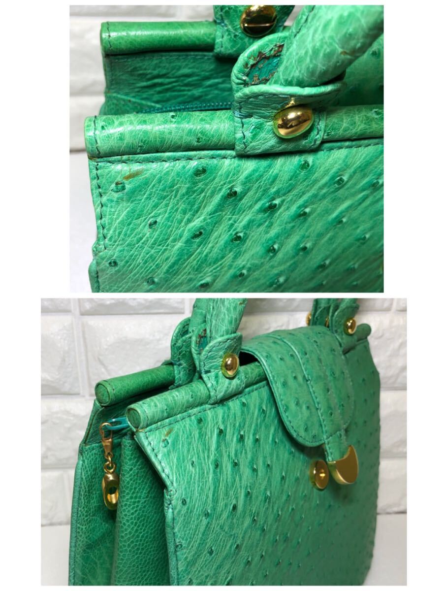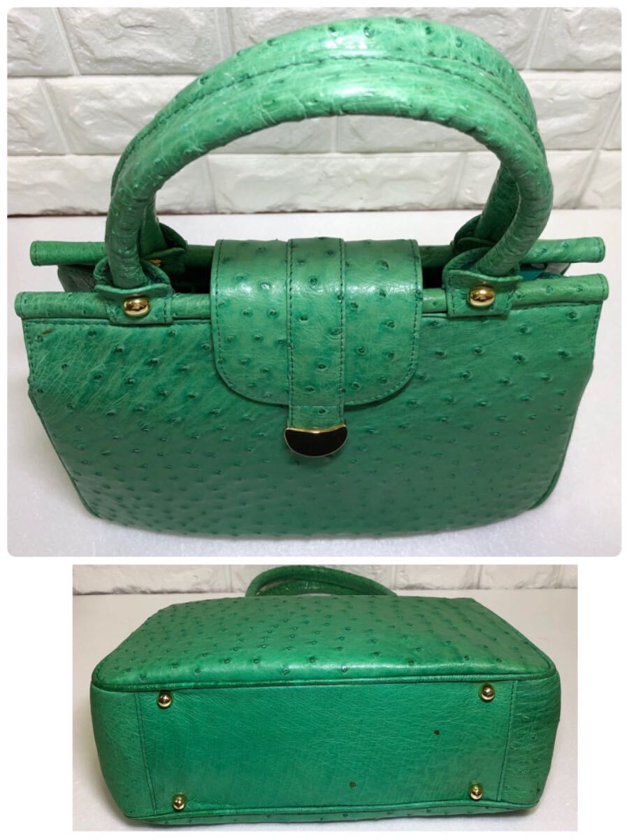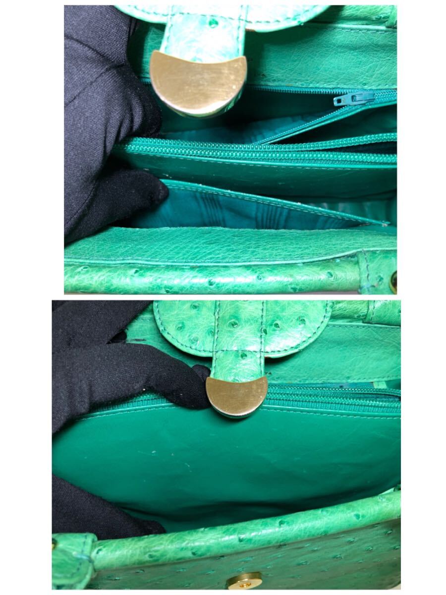 OLOP オロップ オーストリッチ ハンドバッグ ショルダーバッグ レディース グリーン ダチョウ 革製品 革バッグ 本革