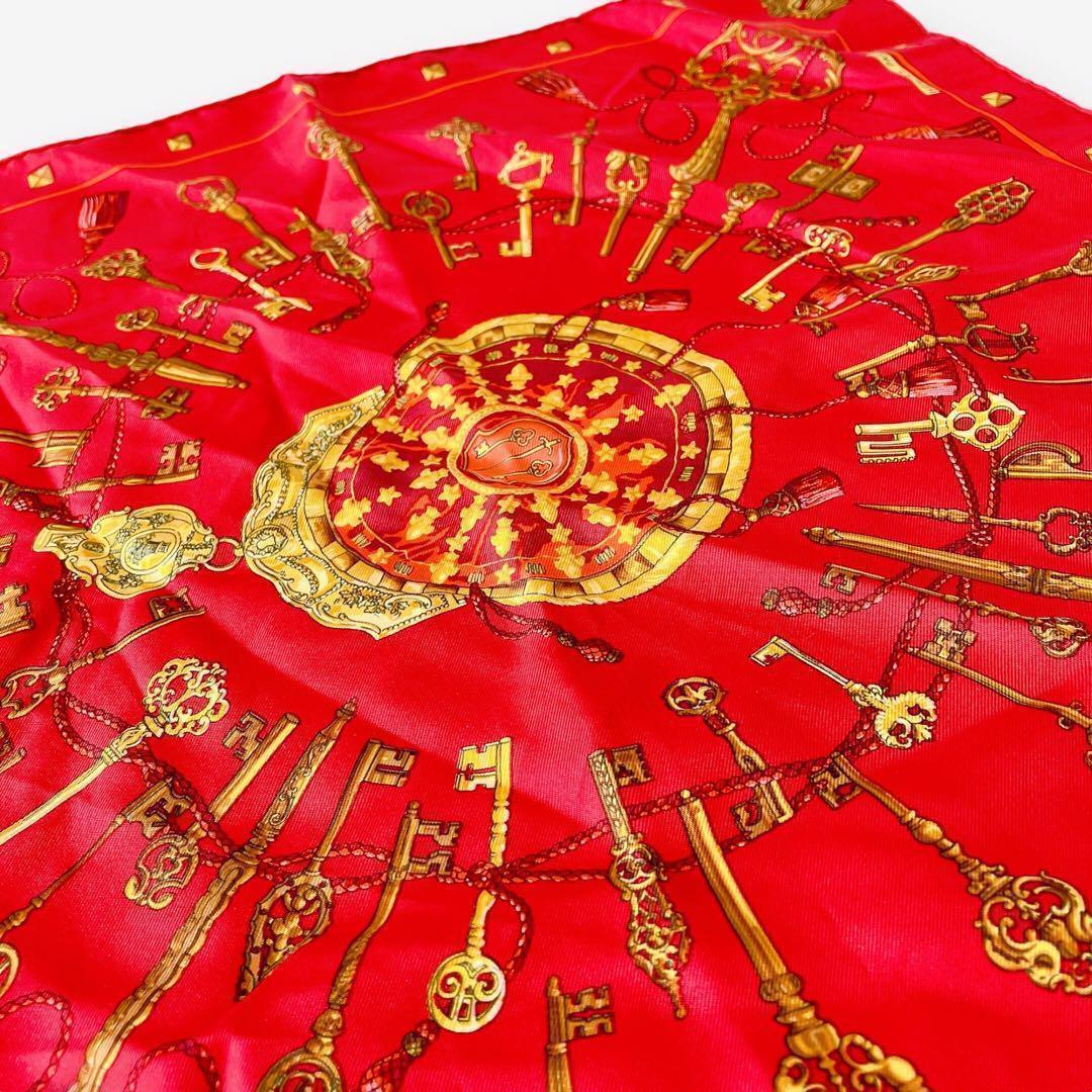 "HERMES(エルメス)/カレ40 スカーフ カレ40 LES CLES KEYS シルク 柄 赤 キー 鍵 key