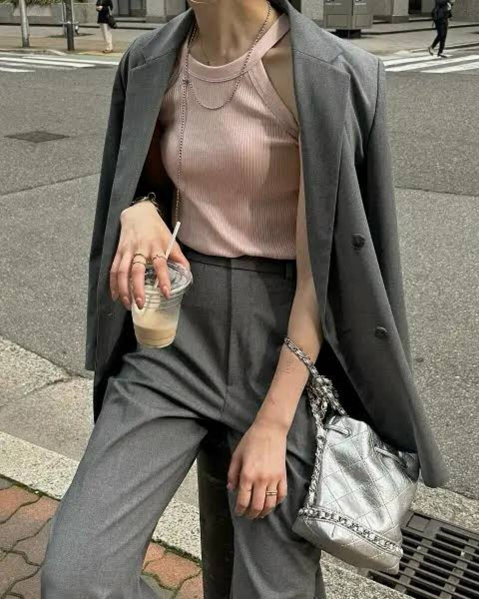 - タックインでもアウトでもコンパクトに着こなせる丈感。