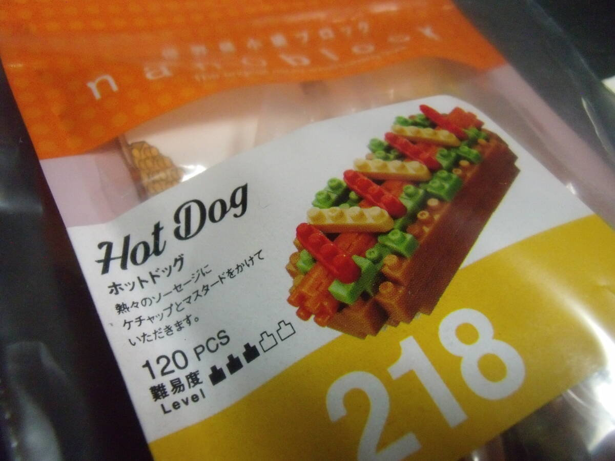 ナノブロックのホットドッグ(NBC-218)です。未開封品です。重さは30gです。