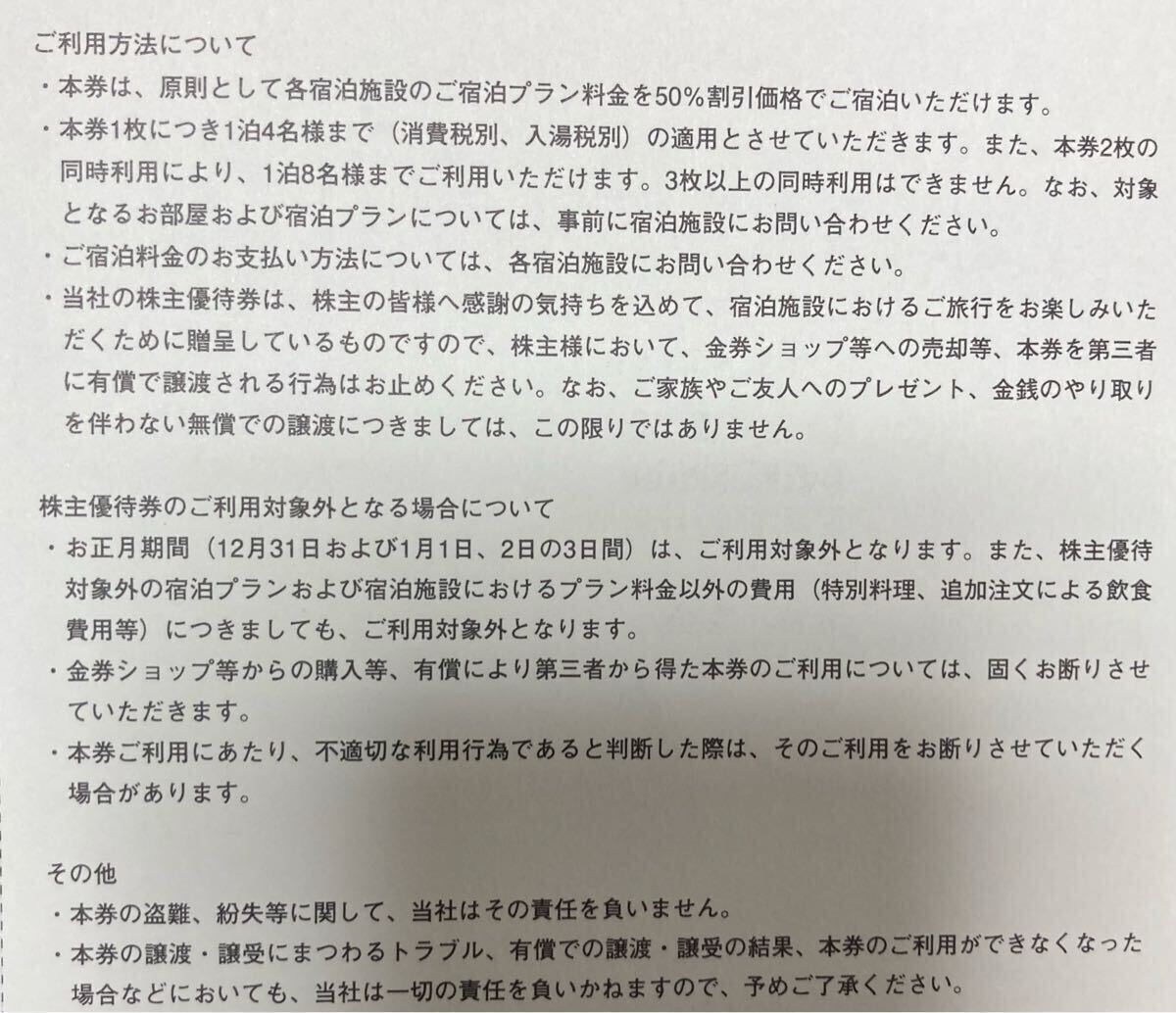※優待券等の使用に際して、ホームページで変更がないかご確認下さい。記載内容は、あくまでも、参考です。ご了承ください。
