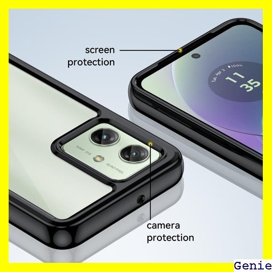 FINON MOTO G64y 5G ケース MOTO G64 5G ケース カバー スマホケース クリア クリアケース ハイブリッド ケース 指紋認証可能モデル 耐衝撃 シンプル ブラック 38