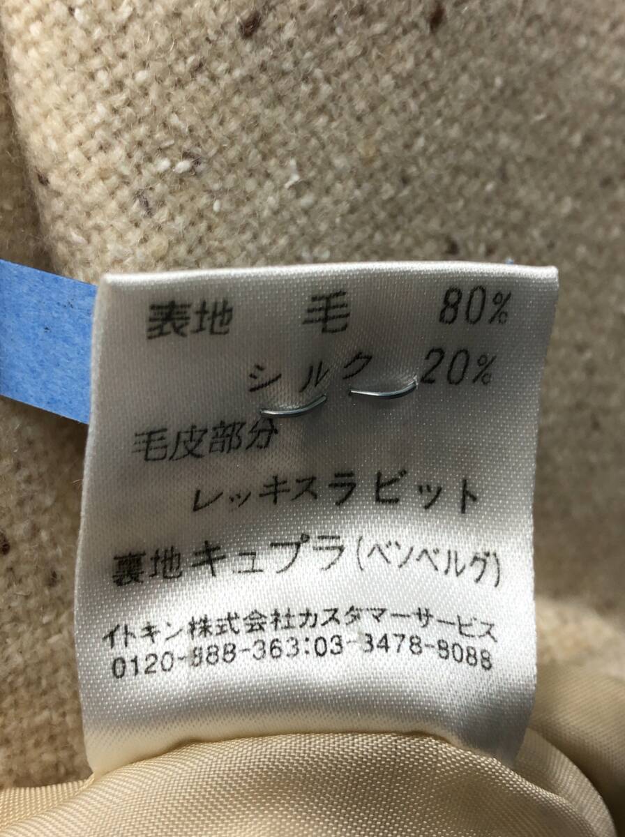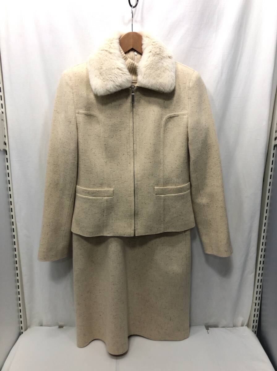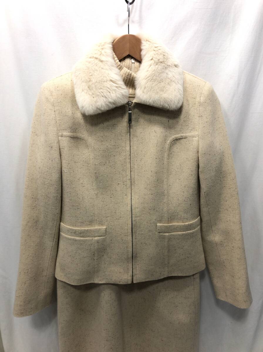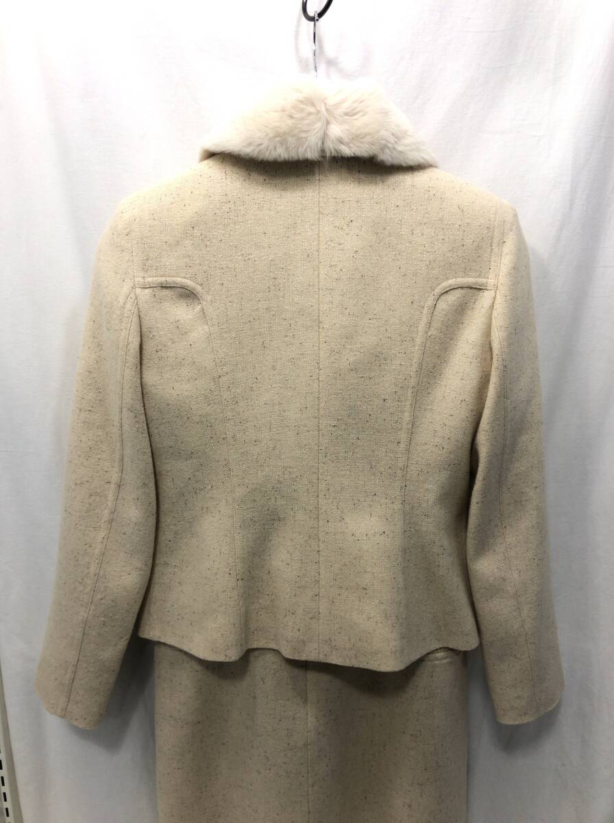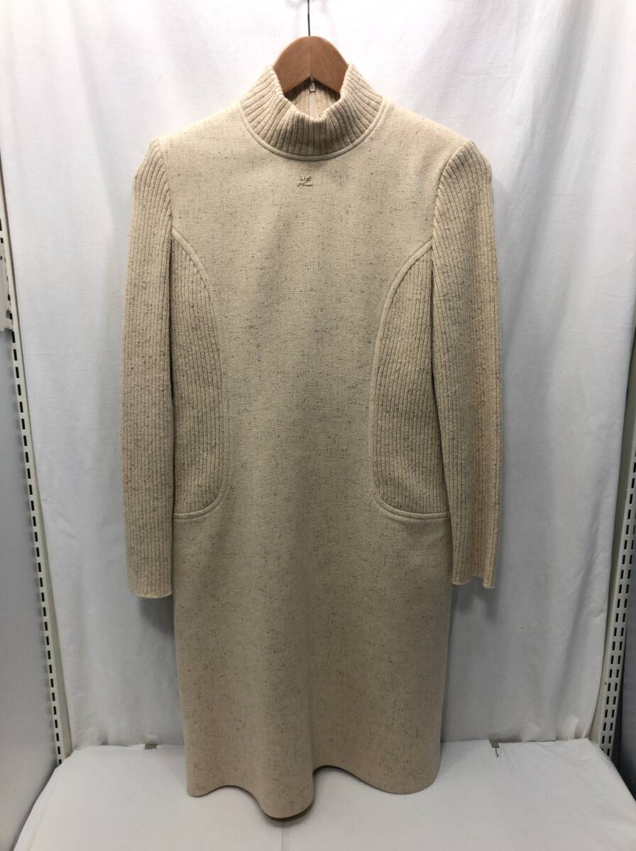 courreges スーツ セットアップ 11AR ベージュ ジャケット 長袖 ワンピース レッキスラビットファー襟 着脱可能 ウール クレージュ F16