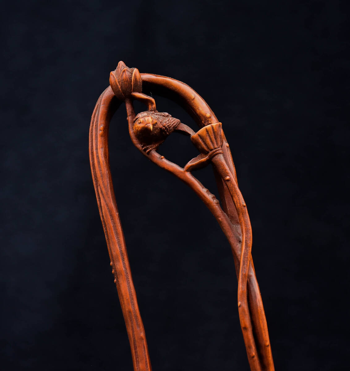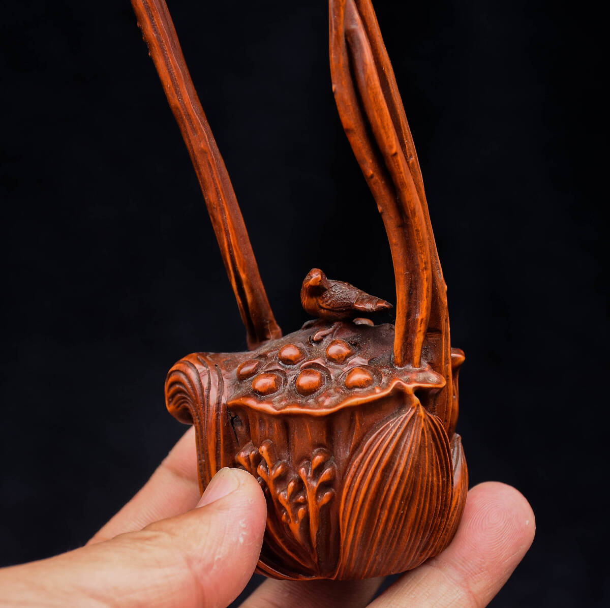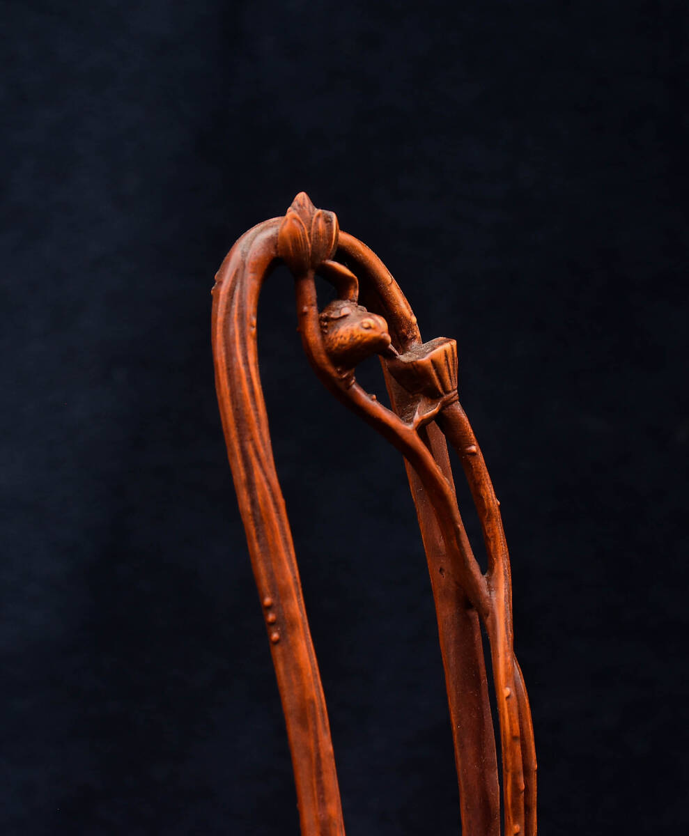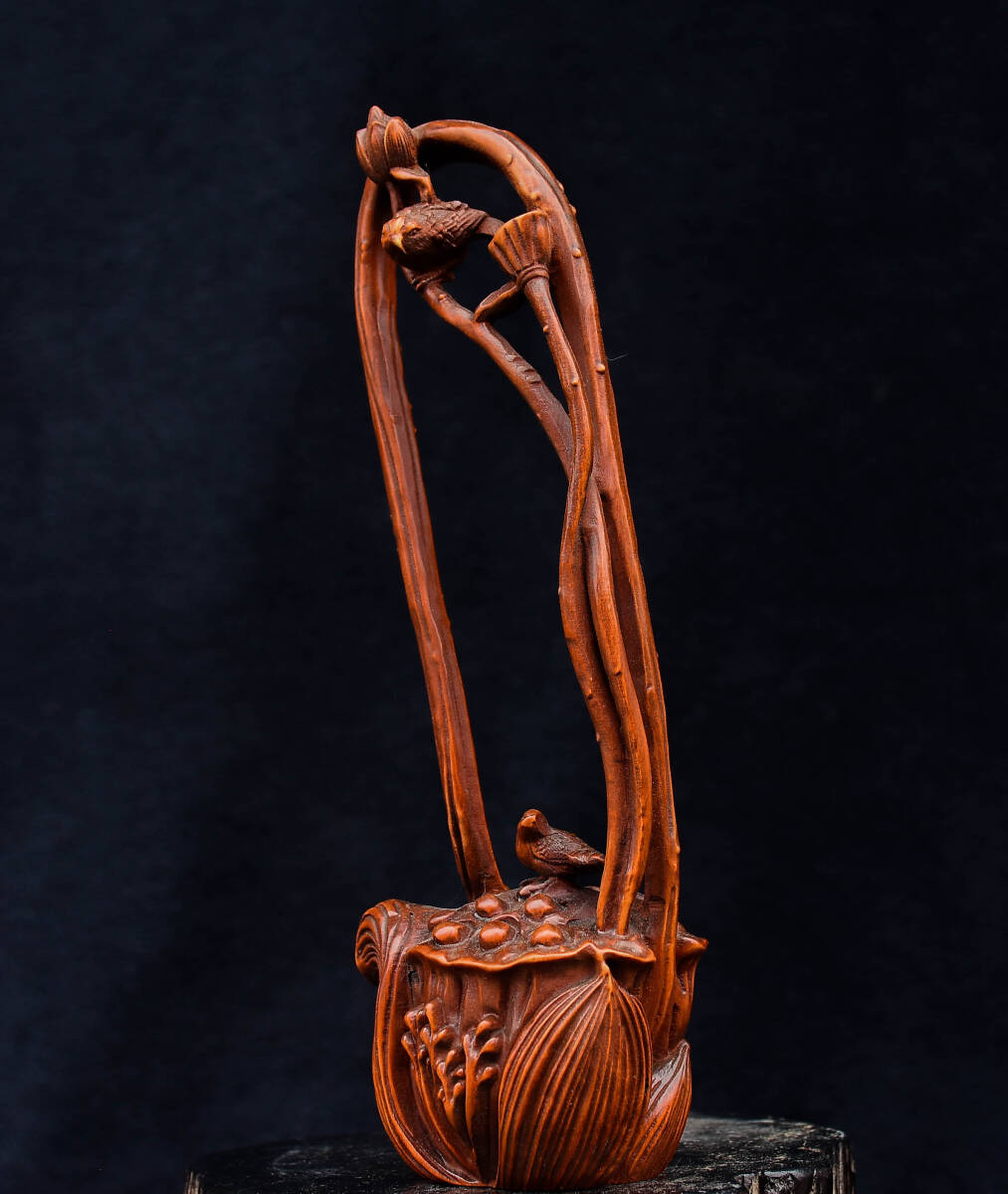 旧藏 黄楊木彫 提籃 籃子 花鳥紋 文案 置物 極細工 古賞物 古美味 東洋彫刻 時代物 骨董 中国古美術