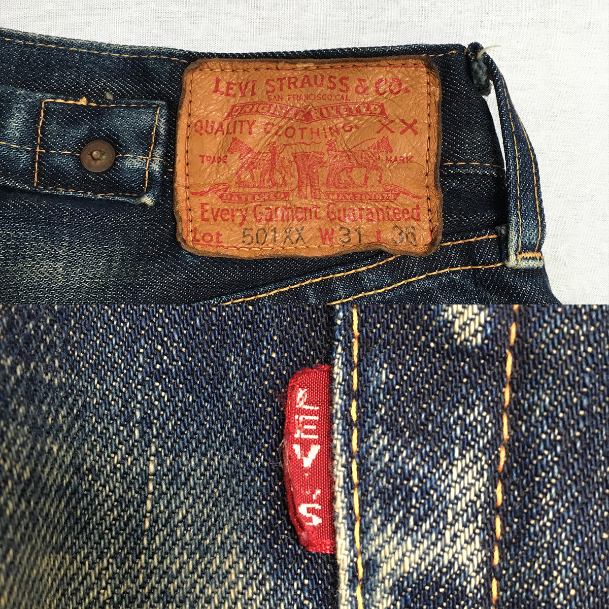 色合いや色落ちの為着用感があるように見えますが、内タグやスレーキの状態