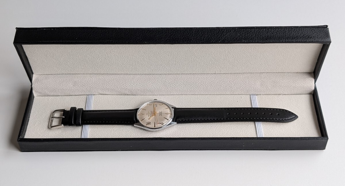 腕廻りは新品革ベルトなので標準フリーサイズです。時計、箱共にヴィンテージの為擦れ、傷や汚れ等ございます。