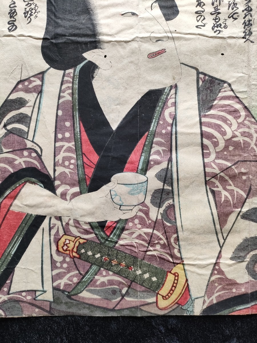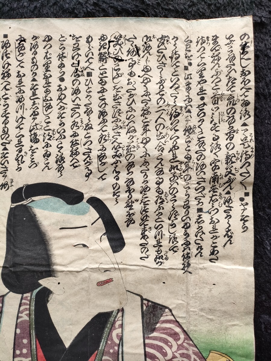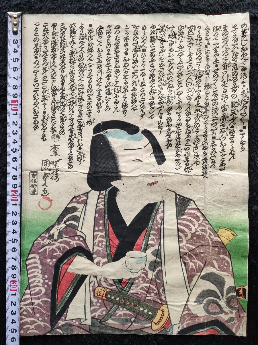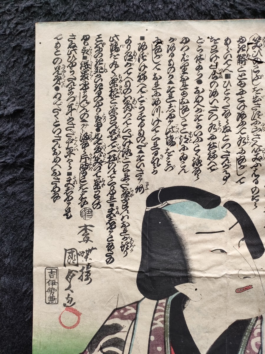 江戸期/真作 歌川国貞「鶴千歳曽我門松」本物浮世絵木版画 役者絵 歌舞伎絵 芝居絵 錦絵 大判 裏打ち