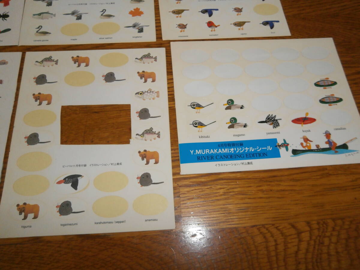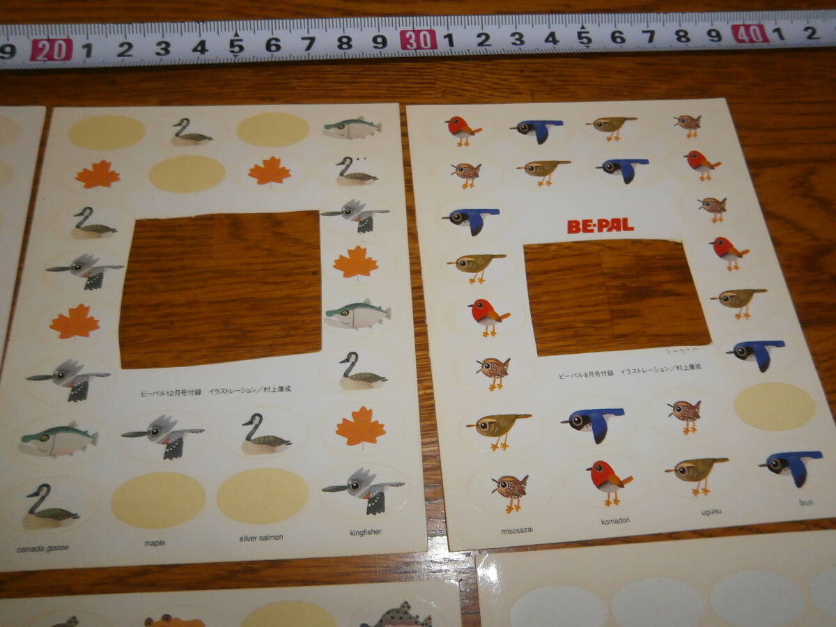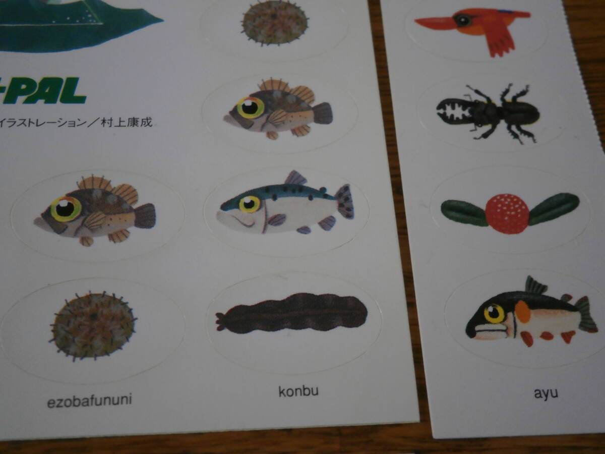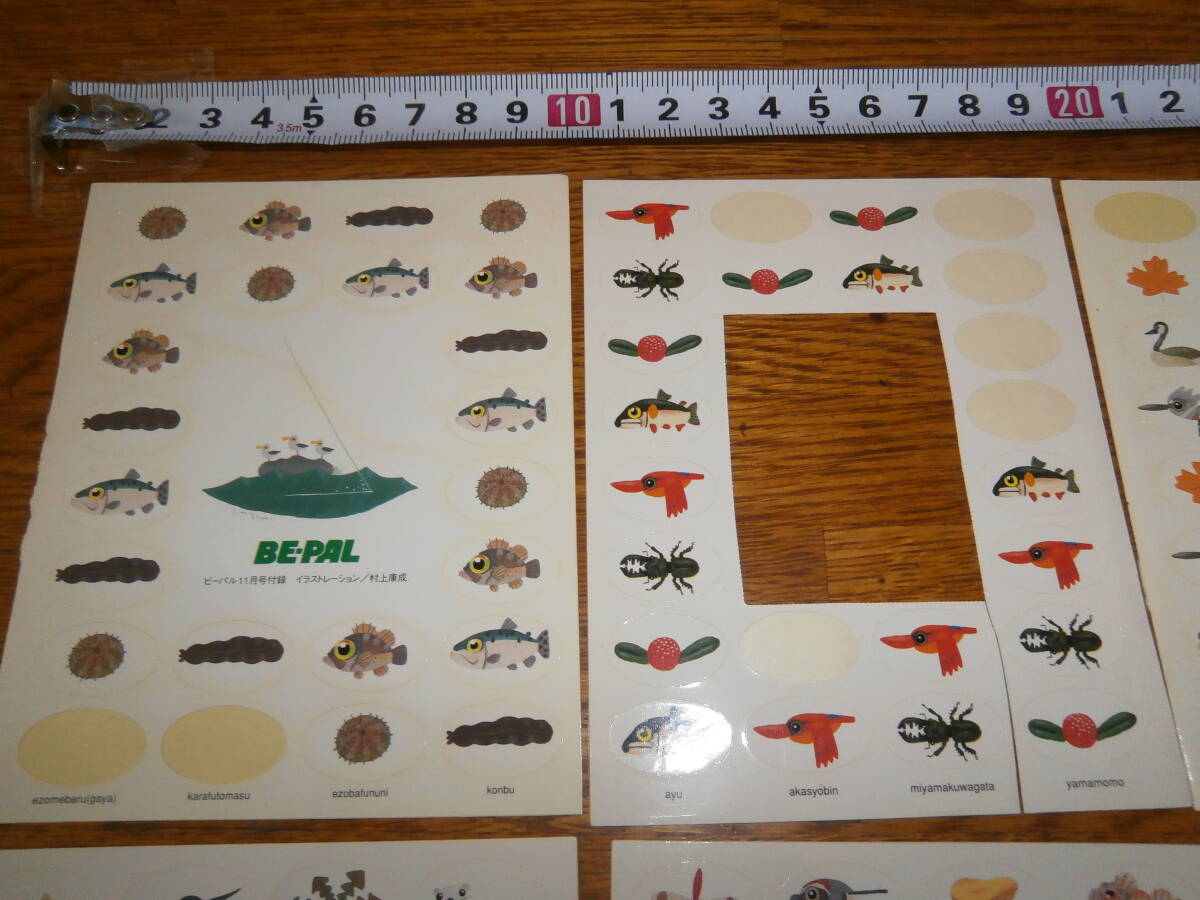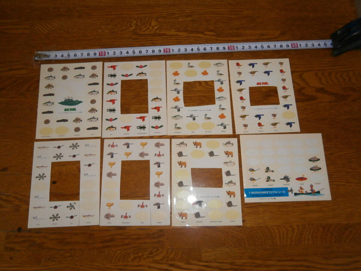 ②昔のBE-PAL ビーパル の村上康成 魚 生き物 自然 ステッカーシール 8枚・使用品あり、超レアです。