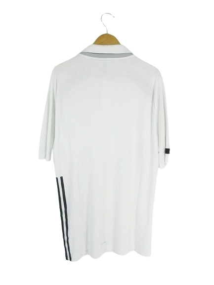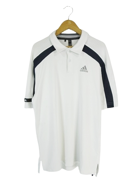 アディダス adidas ポロシャツ ボタン 半袖 ロゴ プリント サイズM 白 国内正規 QQQ メンズ