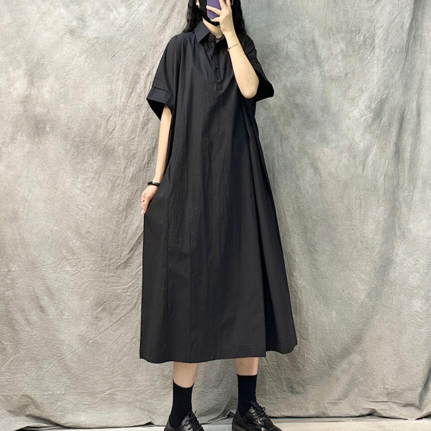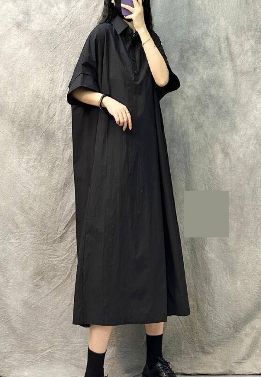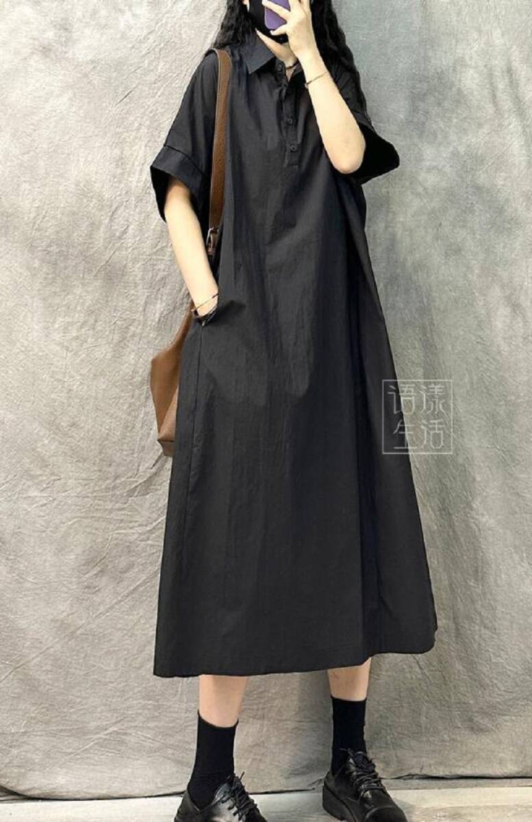 「同梱1万円送料無料」半袖シャツワンピ黒っぽいお色がおしゃれな★新品★大きいサイズ★コットン風素材のロング丈ワンピ