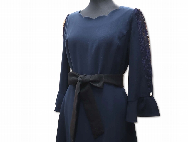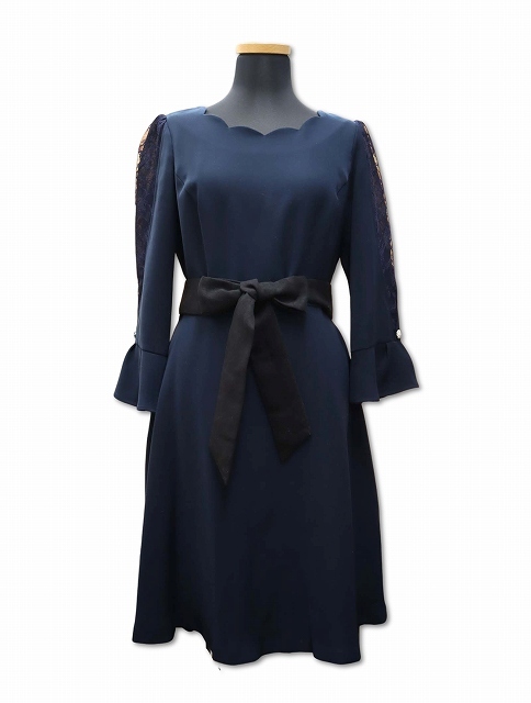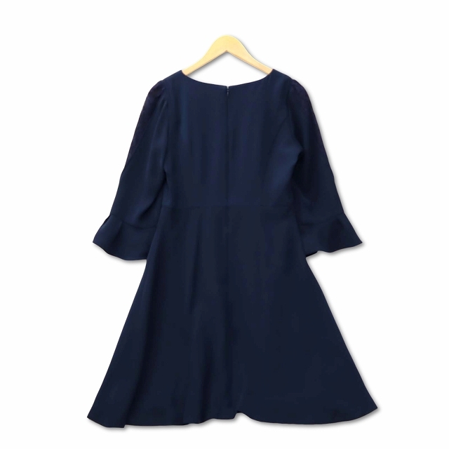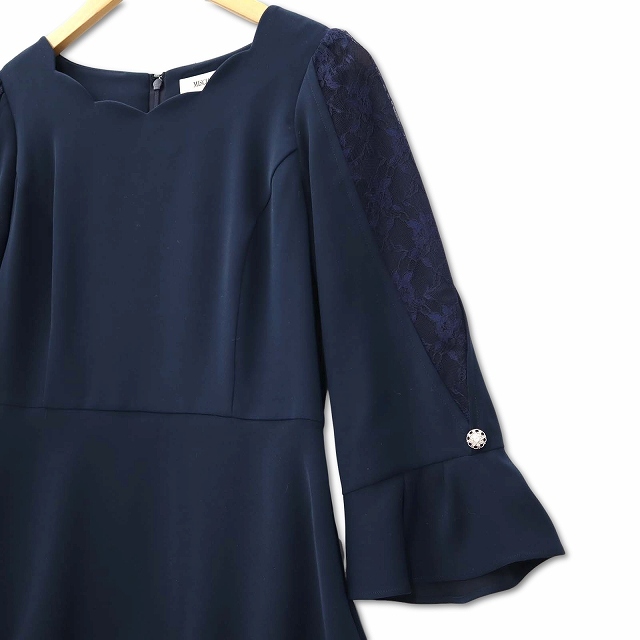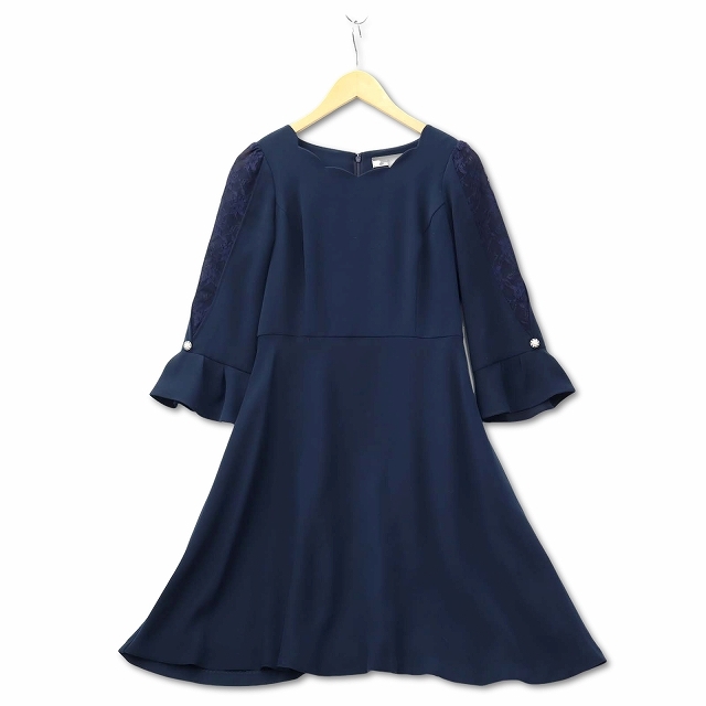 ミッシュマッシュ MISCH MASCH スカラップ レース切替 ベル袖 ワンピース ネイビー 38 (M) レディース