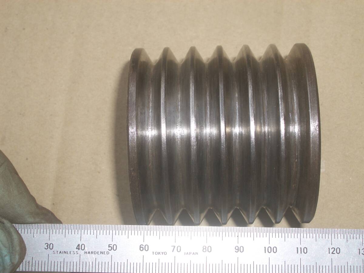 かなり大きなモーターに付いていました。綿ほこりが付いていたので繊維関係の機械のプーリーかもしれません。