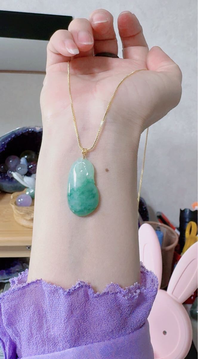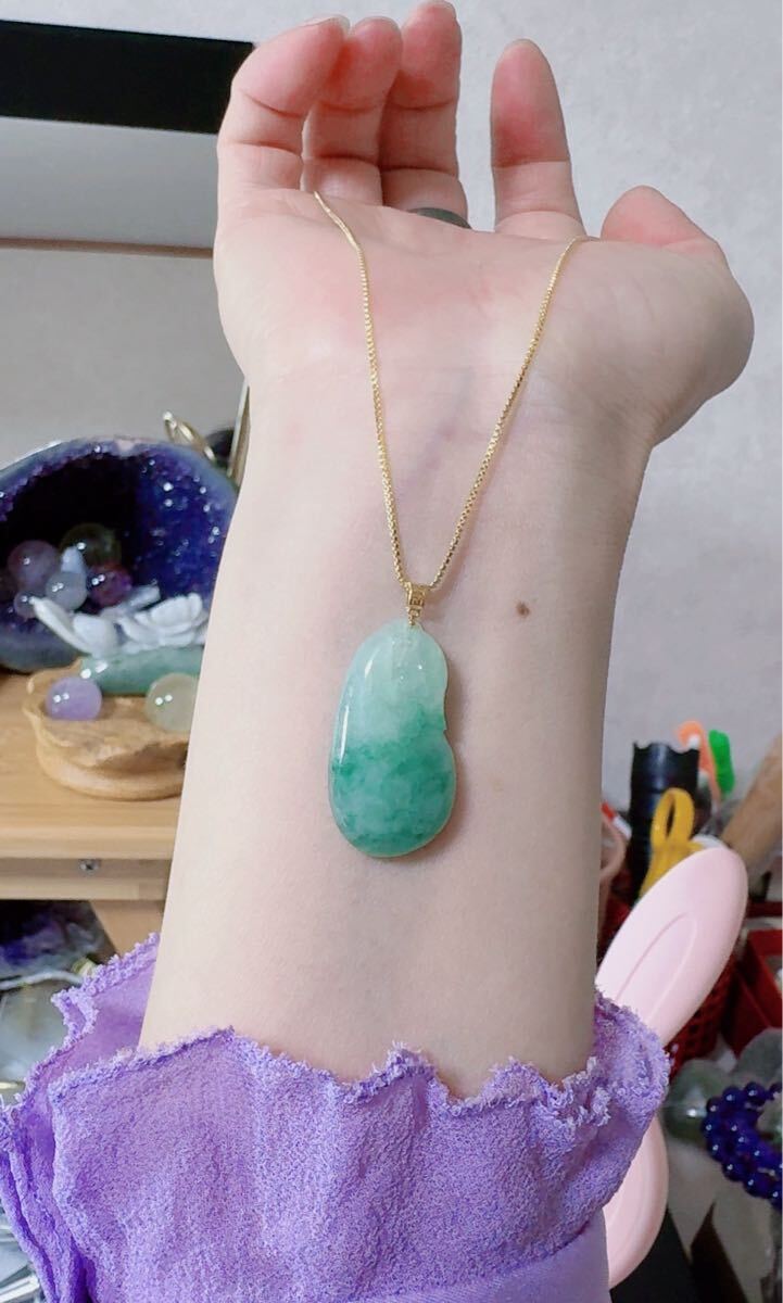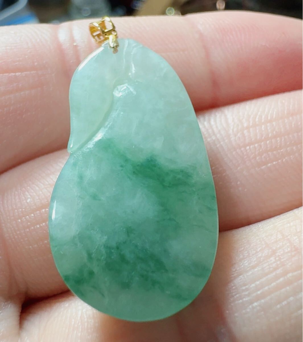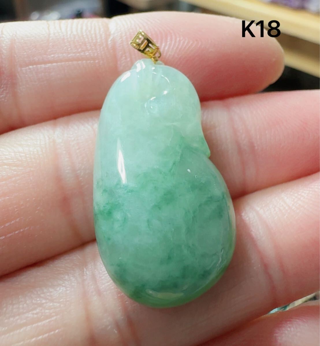 R2-0877天然本翡翠《本物保証》 緑白翡翠 ミャンマー産天然翡翠 ペンダント29.5 K18 一点物 希少 縁起物 お守り パワーストーン