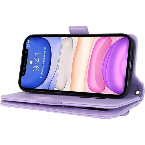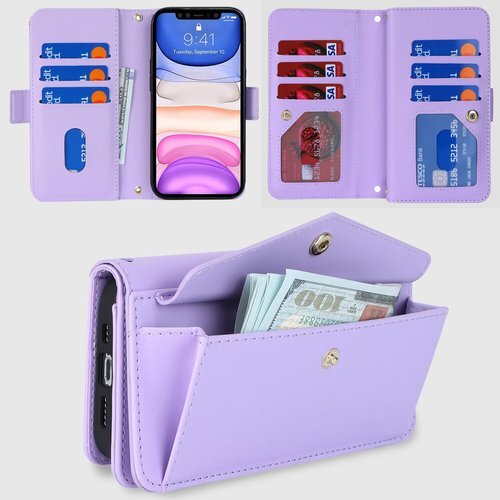 Eastwave for iPhone 11 ケース ショルダー クロスボディアイフォン 11 留め具 肩がけ 首掛け 斜め掛け カードケース for iPhone11 手帳型 携帯 ケース case 財布型 カード収納 小銭入れ PUレザーパープル 1080