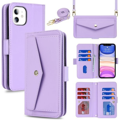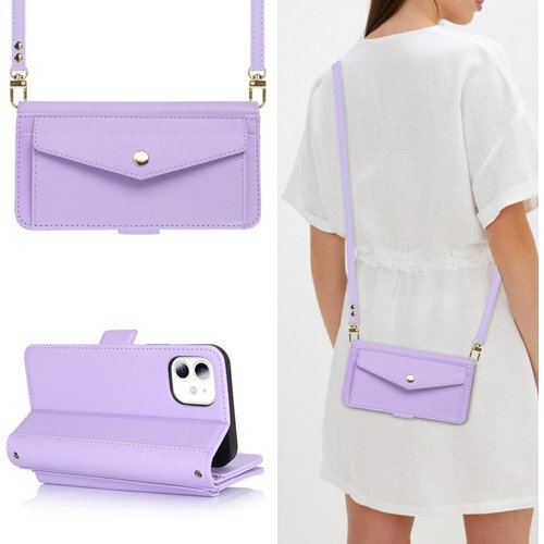 for iPhone 11 ケース ショルダー クロスボディアイフォン 11 留め具 肩がけ 首掛け 斜め掛け カードケース for iPhone11 手帳型 携帯 ケース case 財布型 カード収納 小銭入れ PUレザーパープル