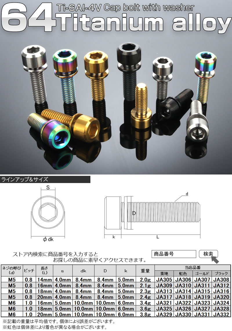 | ■ 64チタン ワッシャー付き キャップボルト | ■ 商品内容 | |