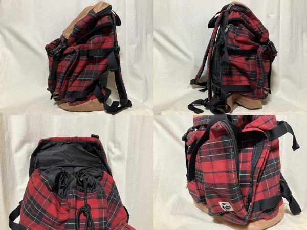 | 色:赤系のチェック柄 底と二部分はライトブラウン系 背面側は黒 いずれも表現するのが難しい微妙な色です ご了承下さい 素材:記載はありません チェック部部分は布地 牛革のようです 背面側にパッドいり(分厚くはありません) サイズ: 採寸:背面の黒い部分を計測/..たかさ44センチ 幅(底付近)31センチ まち16センチ程度? 重さ850グラム 測り所が微妙です 参考程度としてお考え下さい CHUMS チャムスのリュックサックです 正面左右にファスナーで開け閉めするポケットあります(引き手が二つ) ふた部分にファスナーで開け閉めするポケットあります 向かって左側面にファスナーがあります ここから内部にアクセス可能 メインの開け閉め/被せの開け閉めはフック 開けると巾着状になっています 内側にポケット等はありません 中古品です 以前気に入って使用して保管していました(期間回数等の詳細は不明です 御了承下さい) 使用感あります レザー部分にスレやキズあります ※写真参照/底角にスレあります 保管や使用に伴うたたみじわやクセあります 特に目立つような傷汚れ等は見当たりません 今後も使用して頂けるリュックだと思います 上記の事及び、中古品をご理解頂ける方宜しくお願い致します ※発送時は軽く半分にたたみます しわやくせが付く場合があります ご了承ください |
