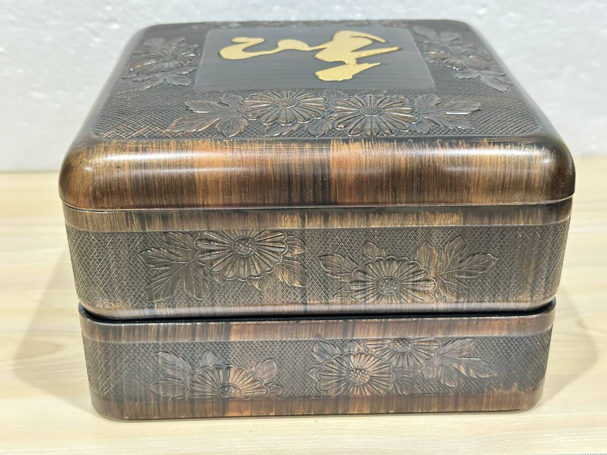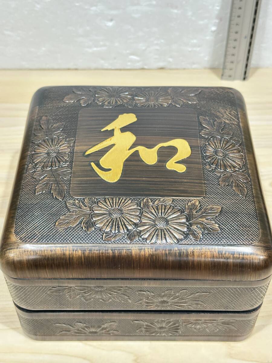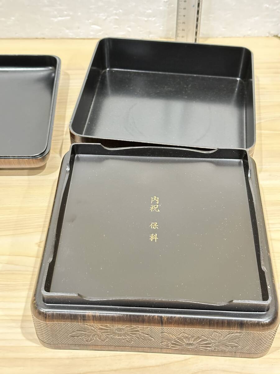8147-1] 長期保管品 二段重箱 お重 和食器 19×19cm お祝い書き込みあり