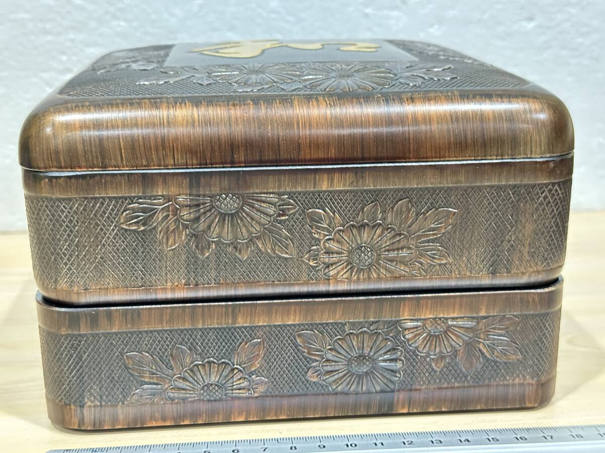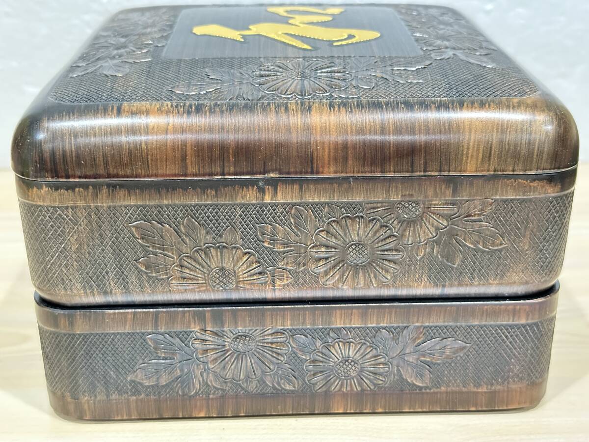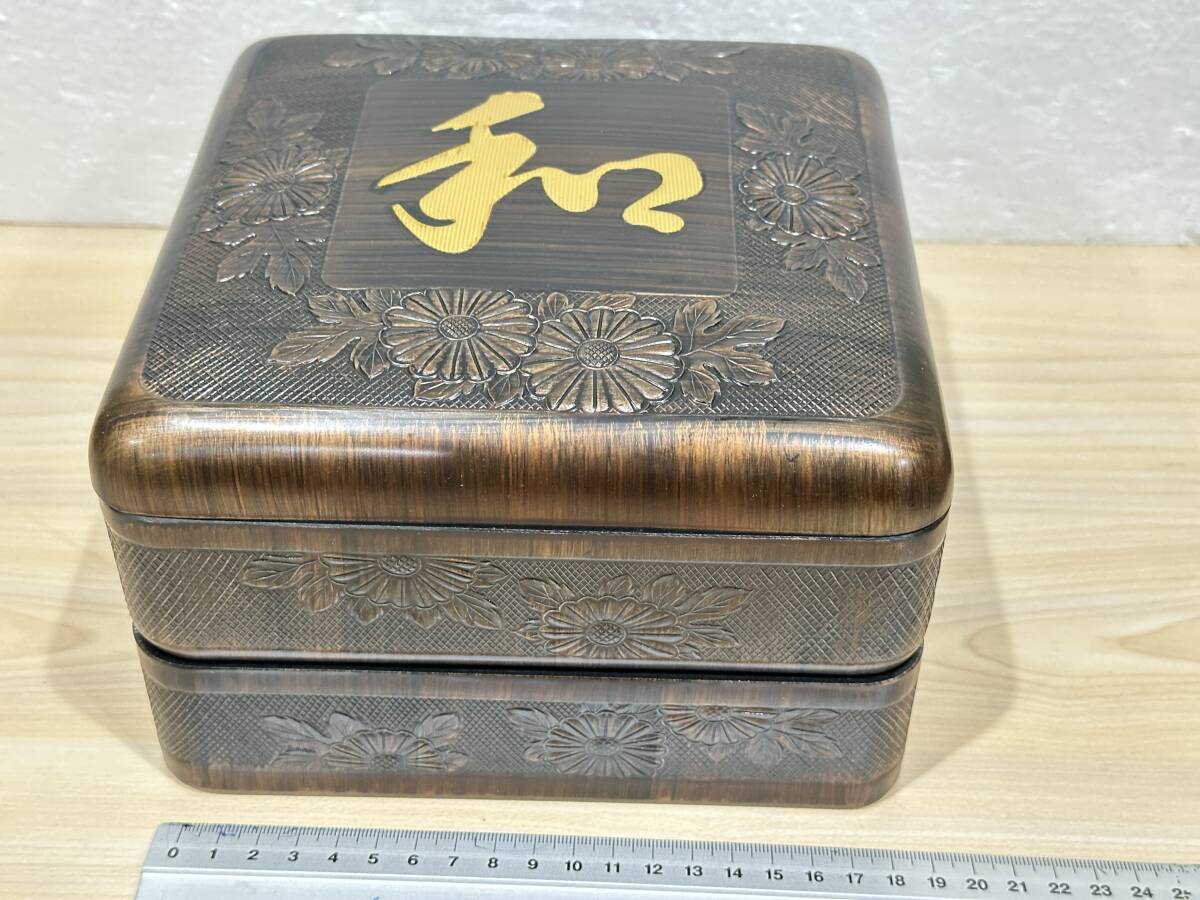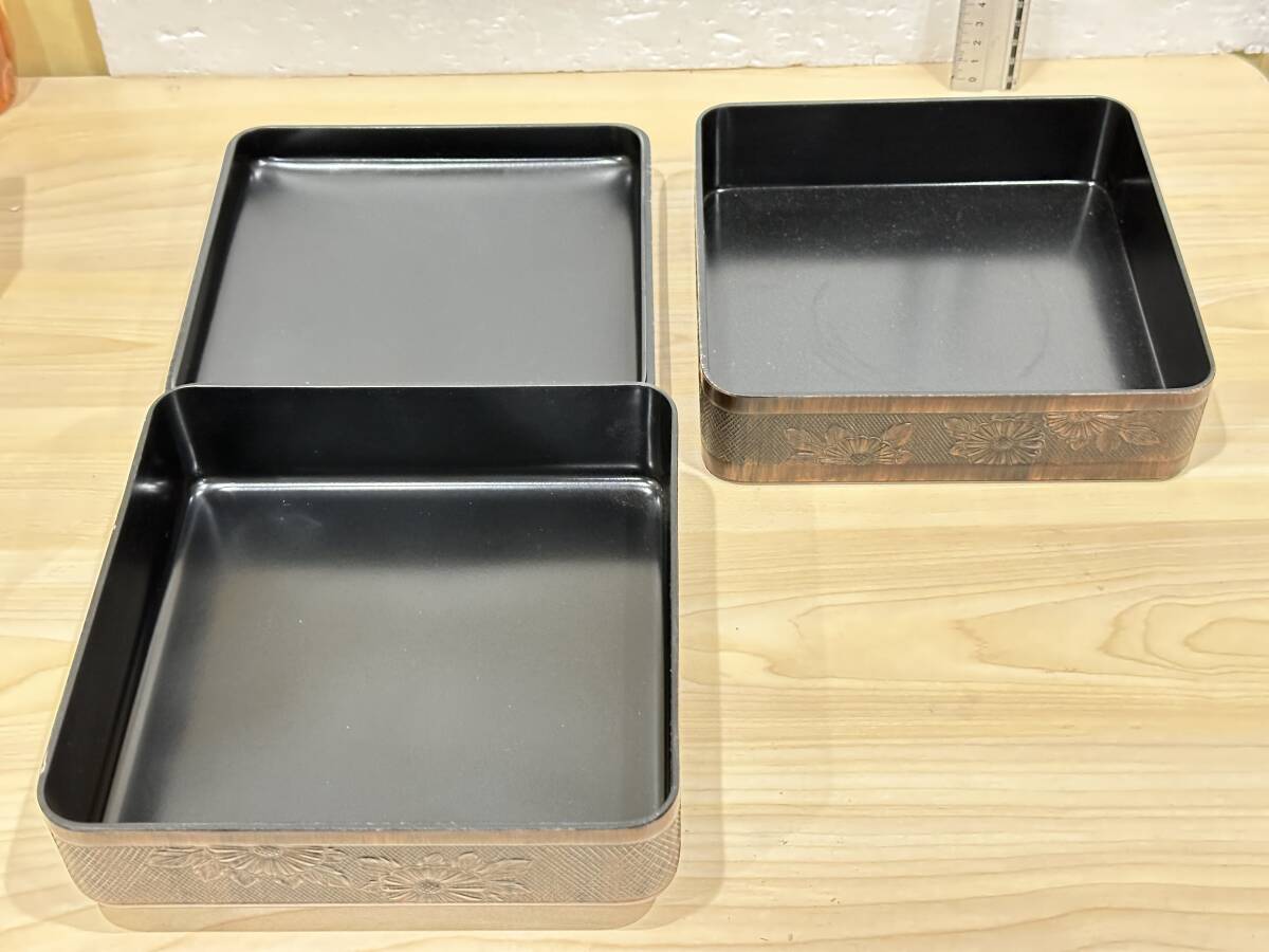8147-1] 長期保管品 二段重箱 お重 和食器 19×19cm お祝い書き込みあり
