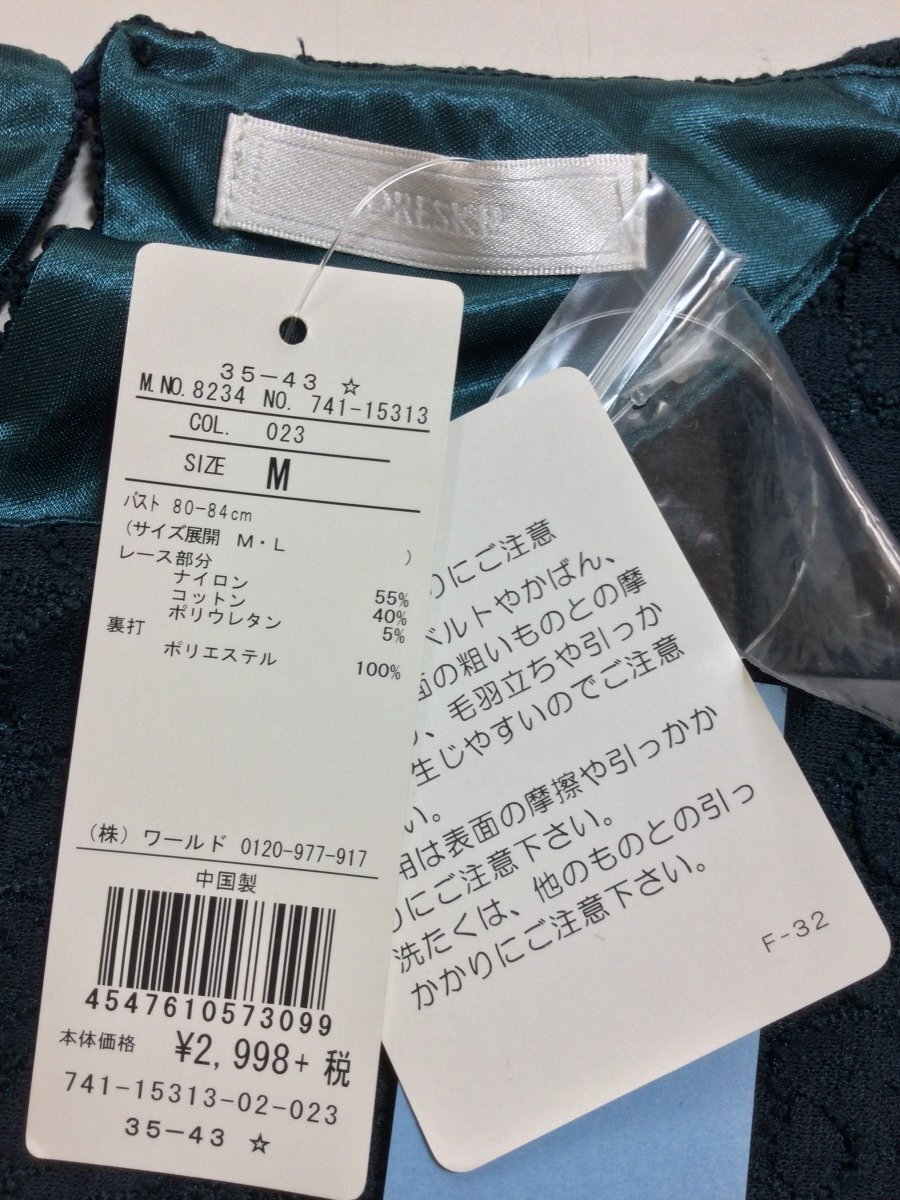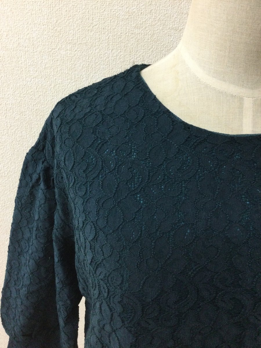 管理番号:99^135598 DRESKIP タグ付き未使用! 濃い青緑のレースカットソー 表示サイズ:M 実寸(参考)