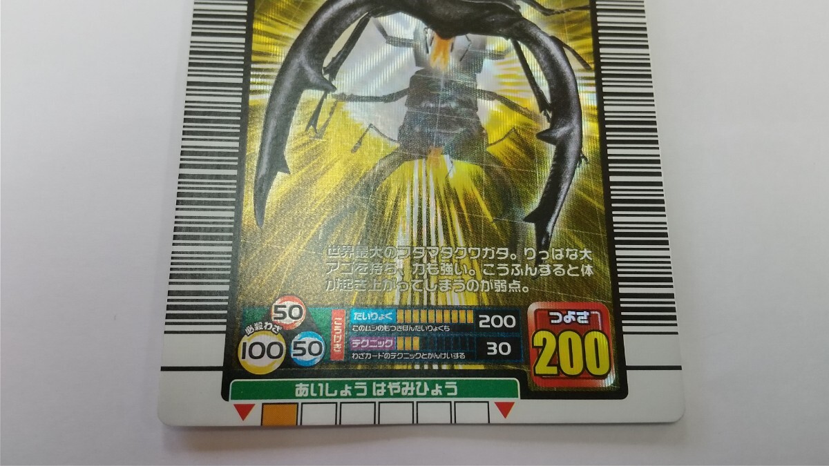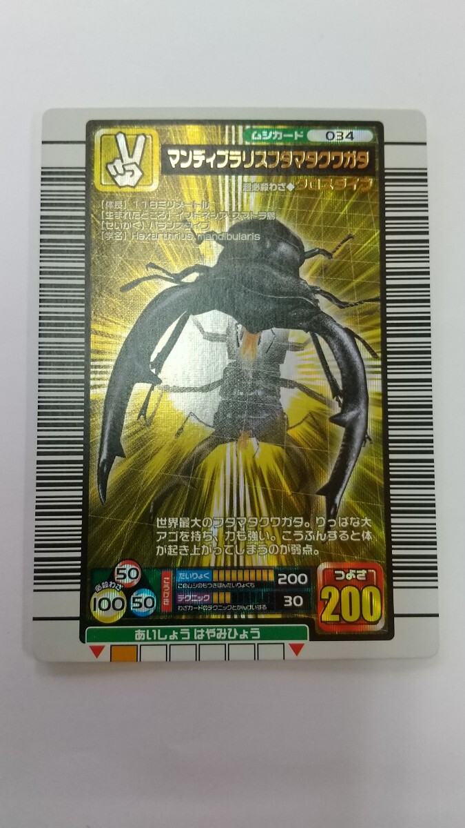 甲虫王者ムシキング2005年ファーストプラスの金レア(200)ムシ【マンディブラリスフタマタクワガタ】になります。