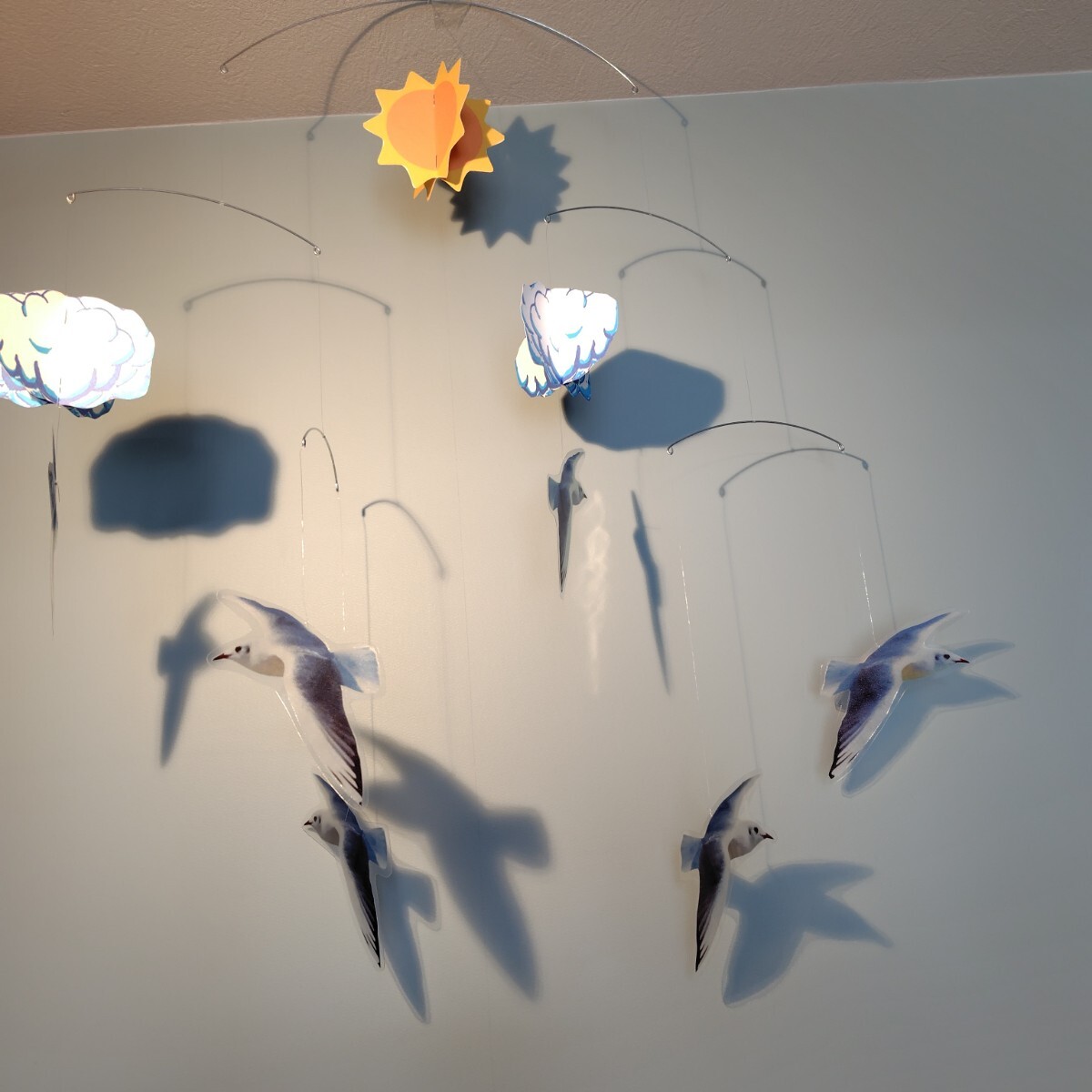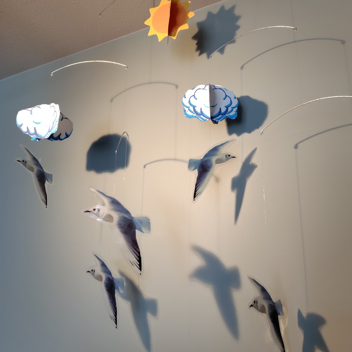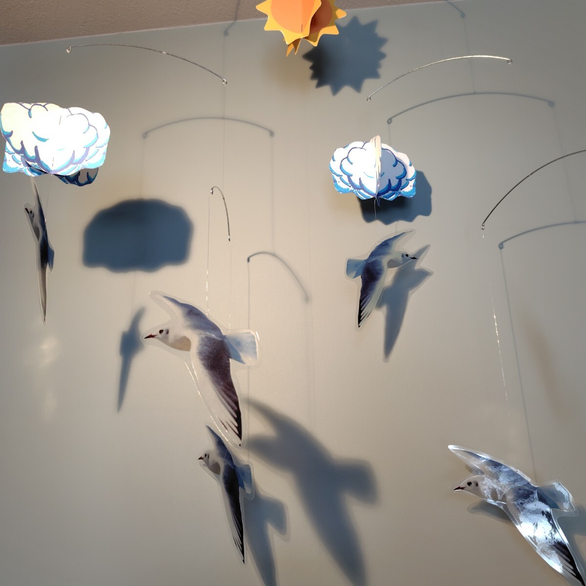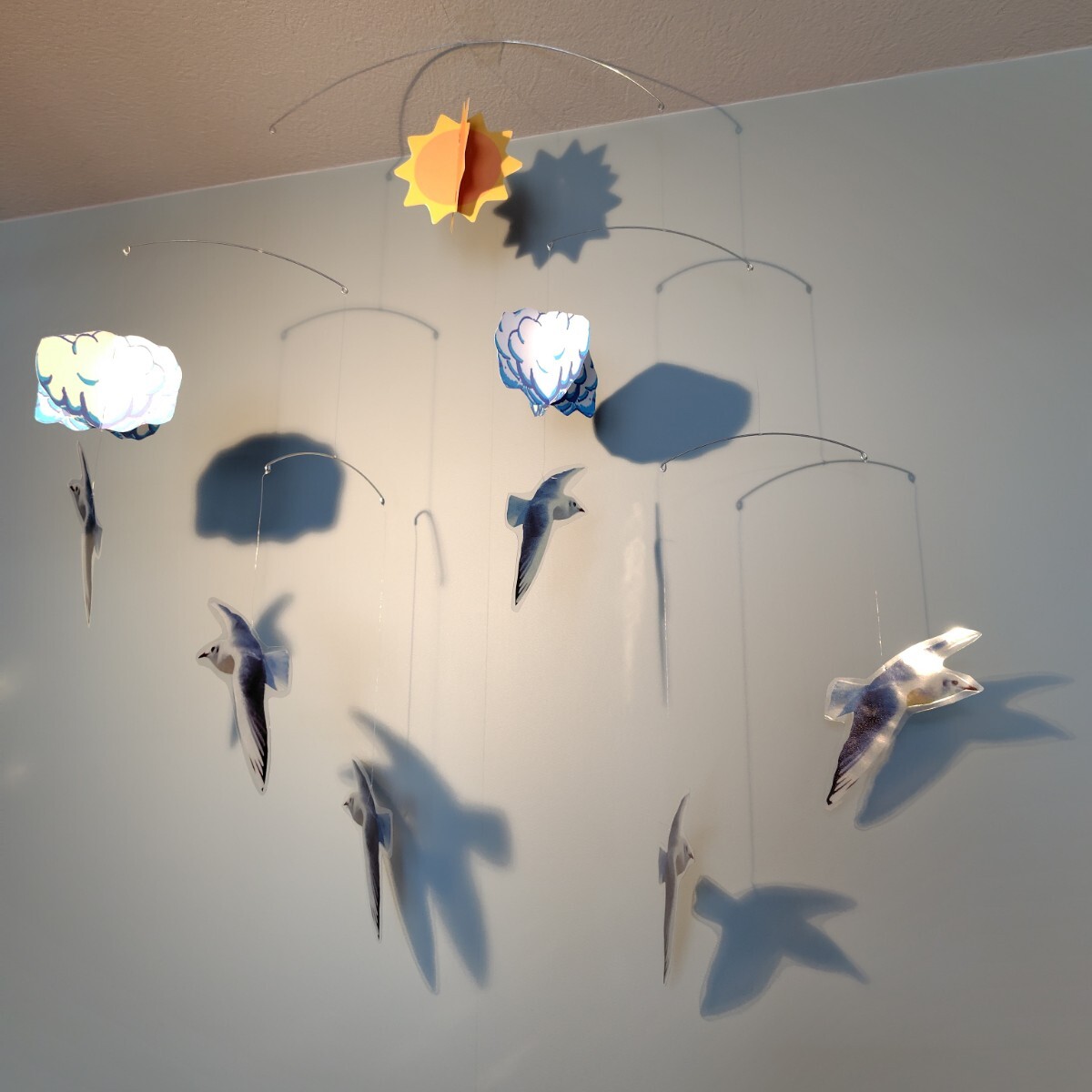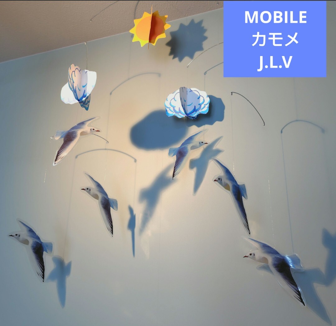 モビールとは動く彫刻。鳥を糸や針金でつるし、それらがバランスを保ちながら、わずかな風で微妙に動くようにしたものです(*^^*)