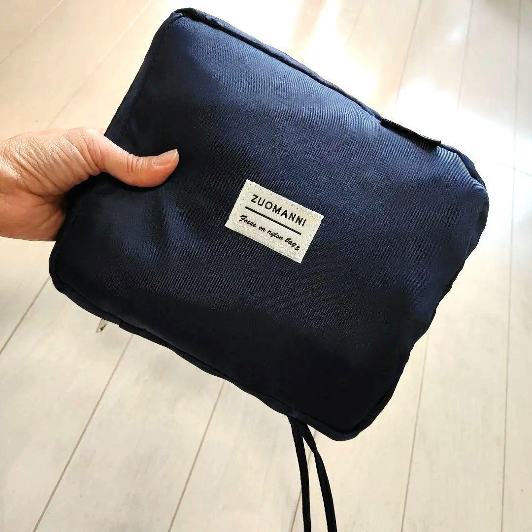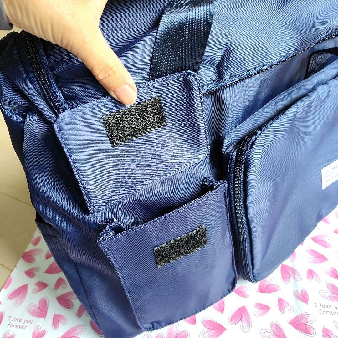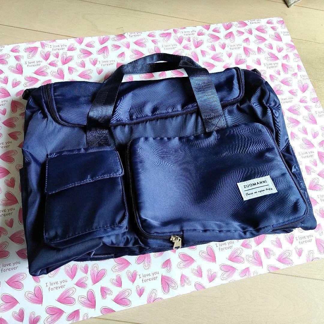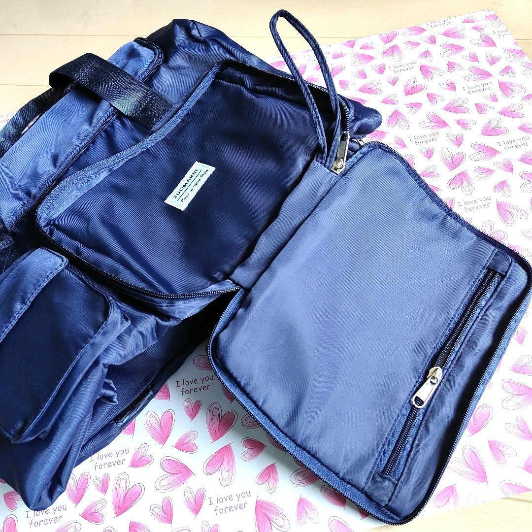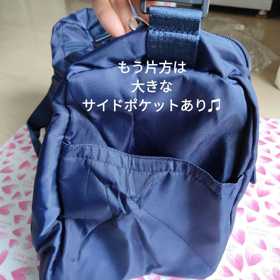 トラベルバッグ 紺 折畳み サイド靴入れ コの字型開閉 ボストン ショルダー紐