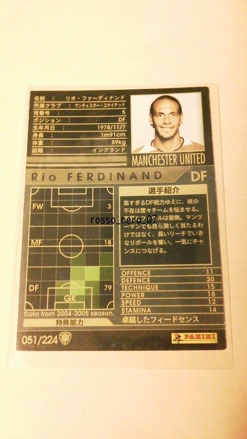 ☆WCCF2004-2005☆04-05☆051☆黒☆リオ・ファーディナンド☆マンチェスター・ユナイテッド☆Rio Ferdinand☆Manchester United☆