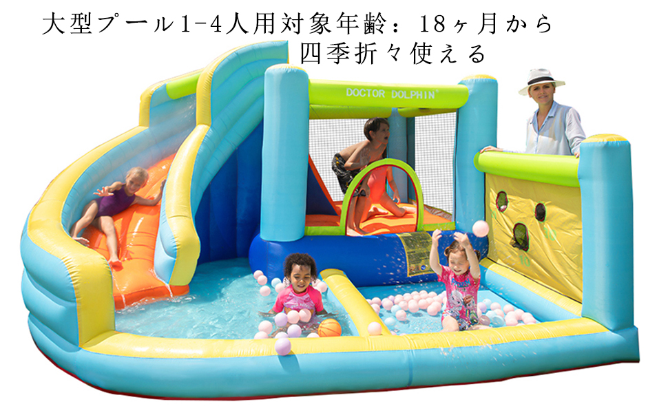 大型 プール 1-4人用四季使い大型遊園地 トランポリン&すべり台&プール&岩登り 対象年齢:18ヶ月から お子様1-4人用,耐荷重: 120 kg 子供一人あたり体重30公斤まで対応。 4人までまま游まべでまま。子どもが大好きな誕生日プレゼント