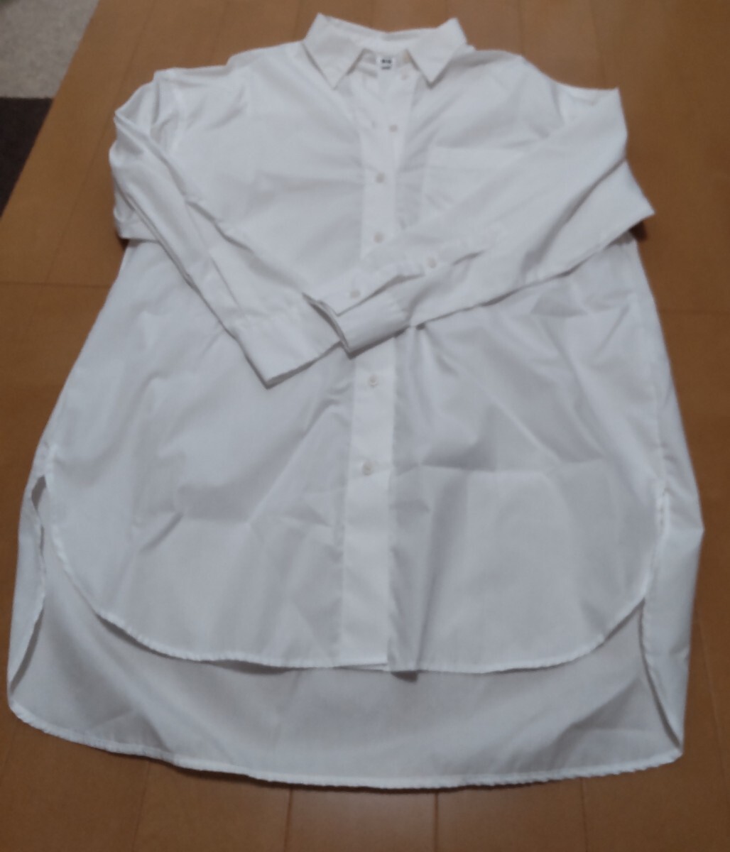 新品!ユニクロのエクストラファインコットンオーバーサイズロングシャツです。お色は白です。