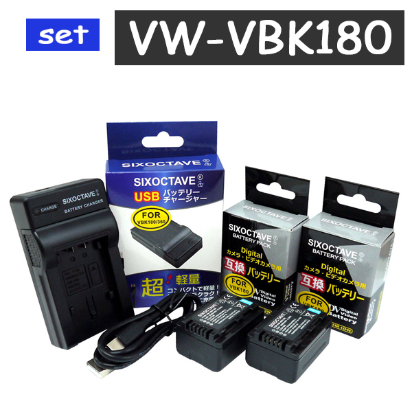 VW-VBK180 / VW-VBK180-K パナソニック 互換バッテリ-2個と互換USB充電器の3点 set