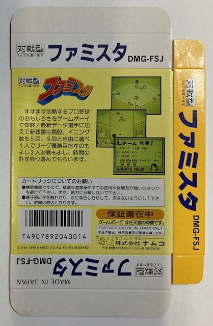 ゲームボーイ ファミスタ 未組み立ての箱 未使用品 当時物 未組立て