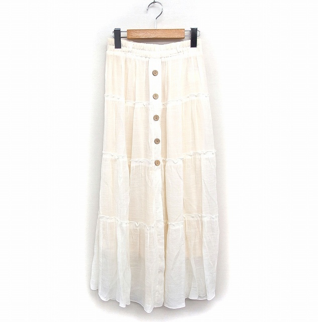 アズノウアズ ピンキー AS KNOW AS PINKY ティアード スカート ロング丈 ボタンダウン レース ※ オフホワイト 白 /FT13 レディース