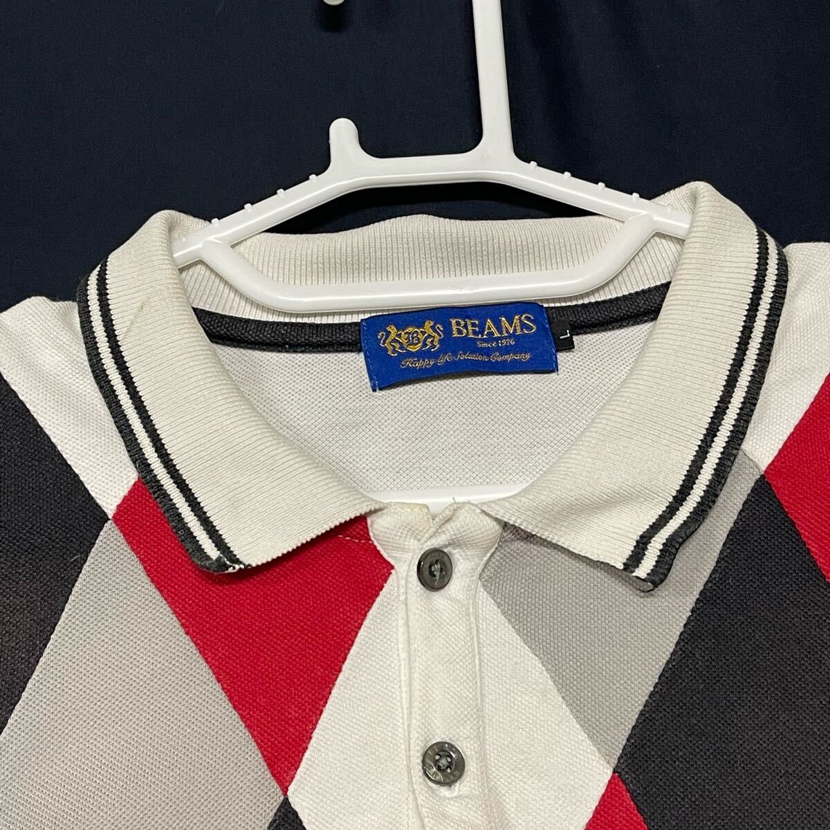 BEAMS アーガイル ポロシャツ リブライン 鹿の子 半袖ポロシャツ ビームス  アーガイルパッチワーク ハイクオリティー YL1994