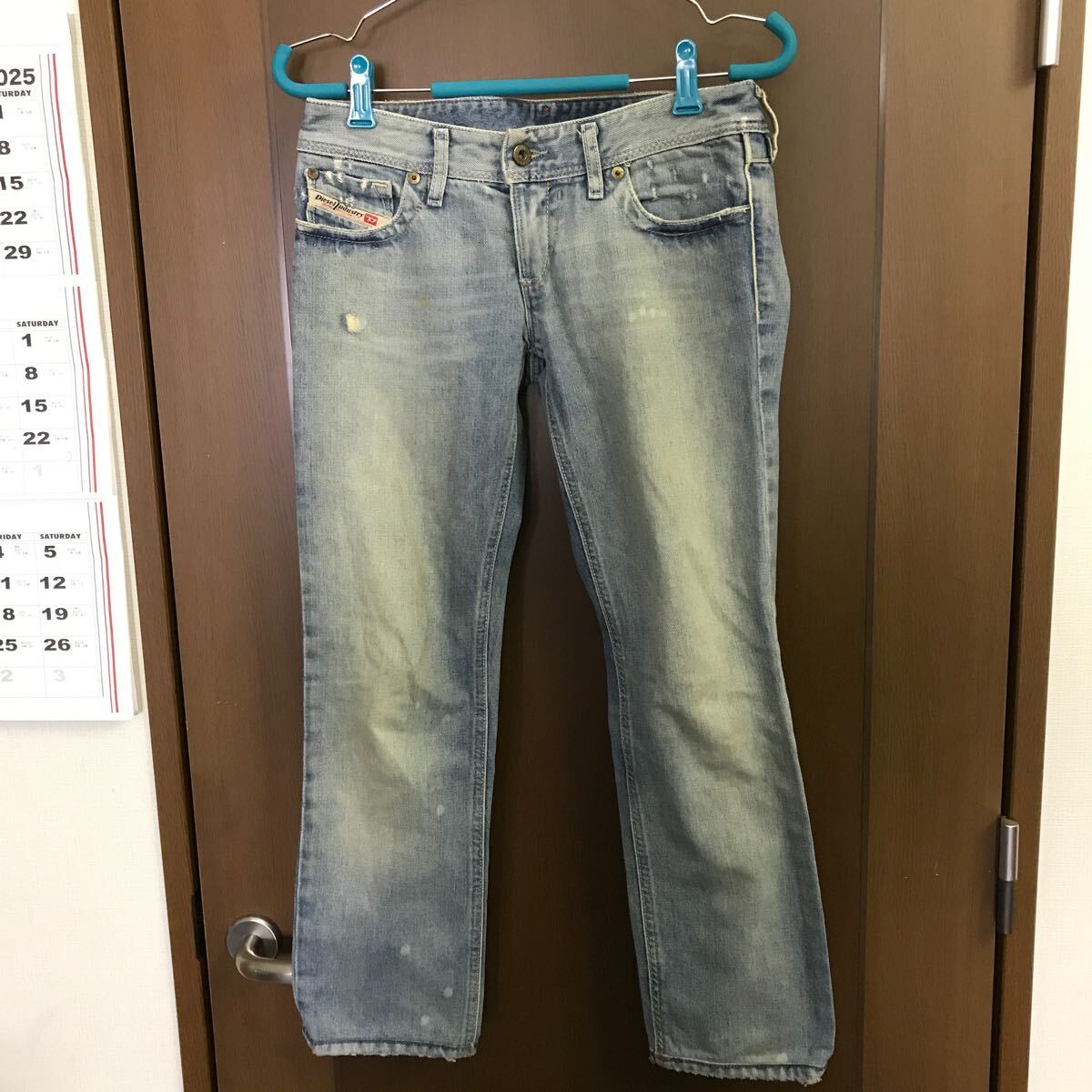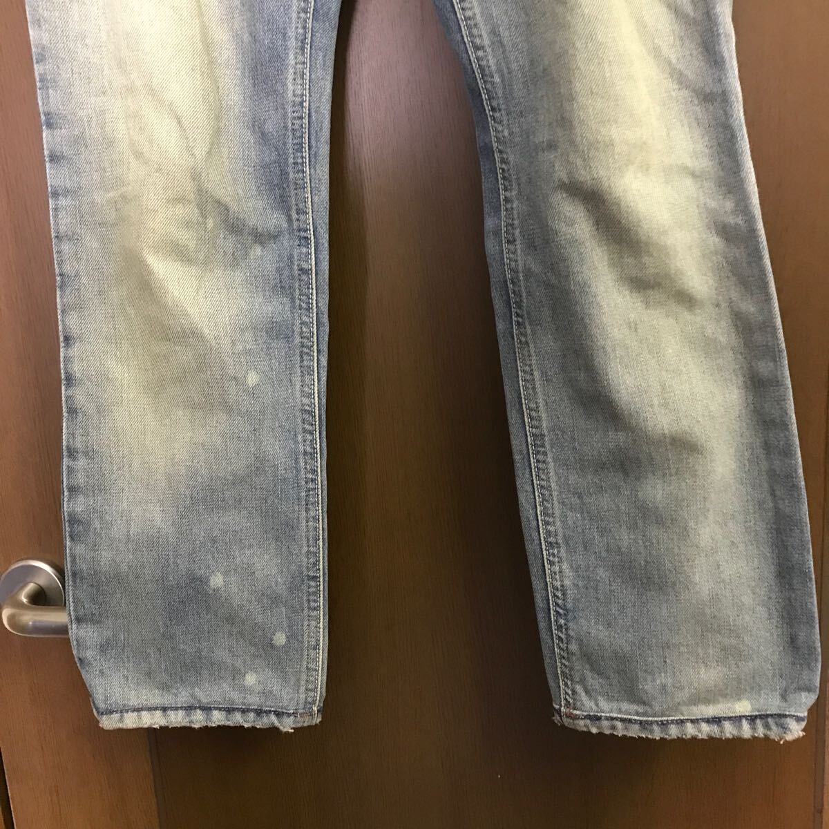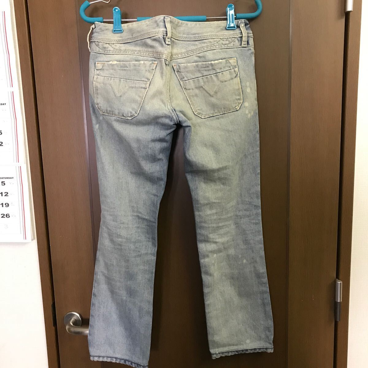 表記サイズは25。実測値は平置きでウエスト36cm、ヒップ43cm、股上18cm、股下67cm、裾幅16cm。