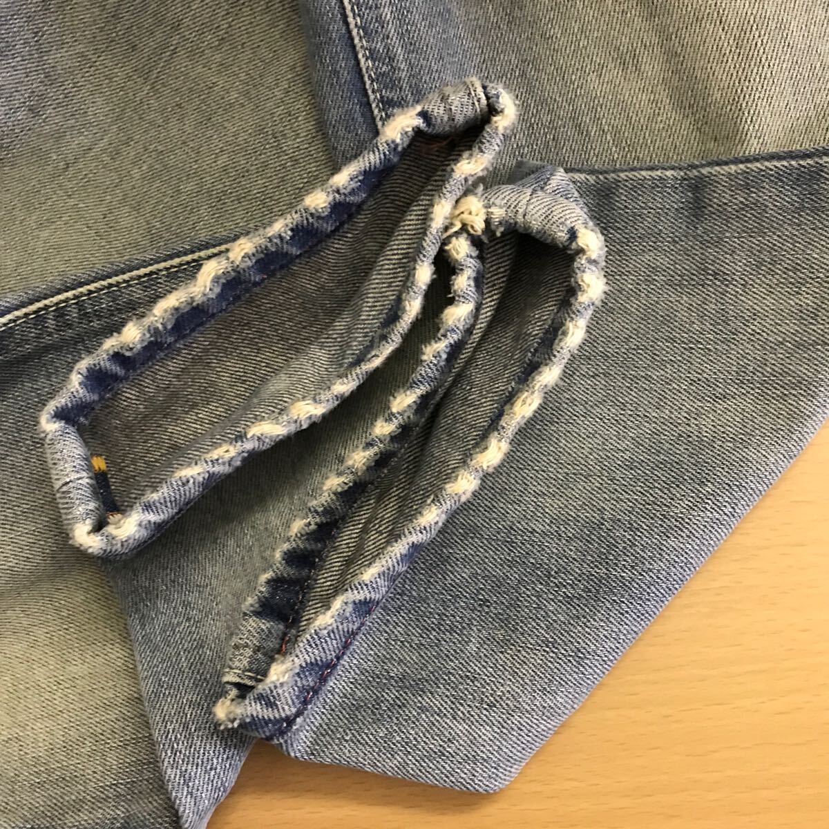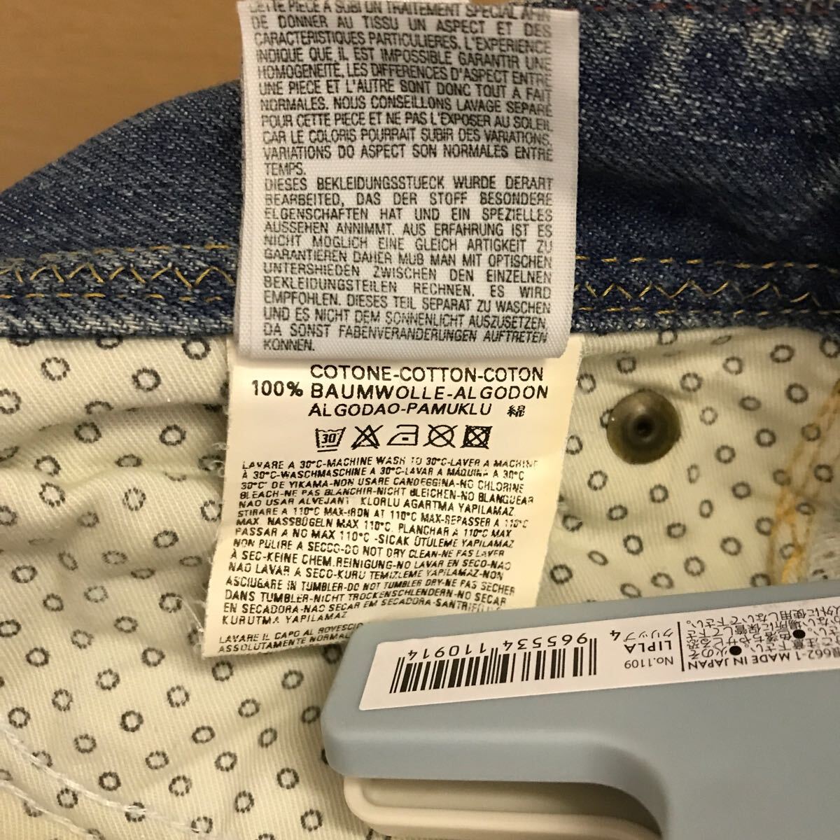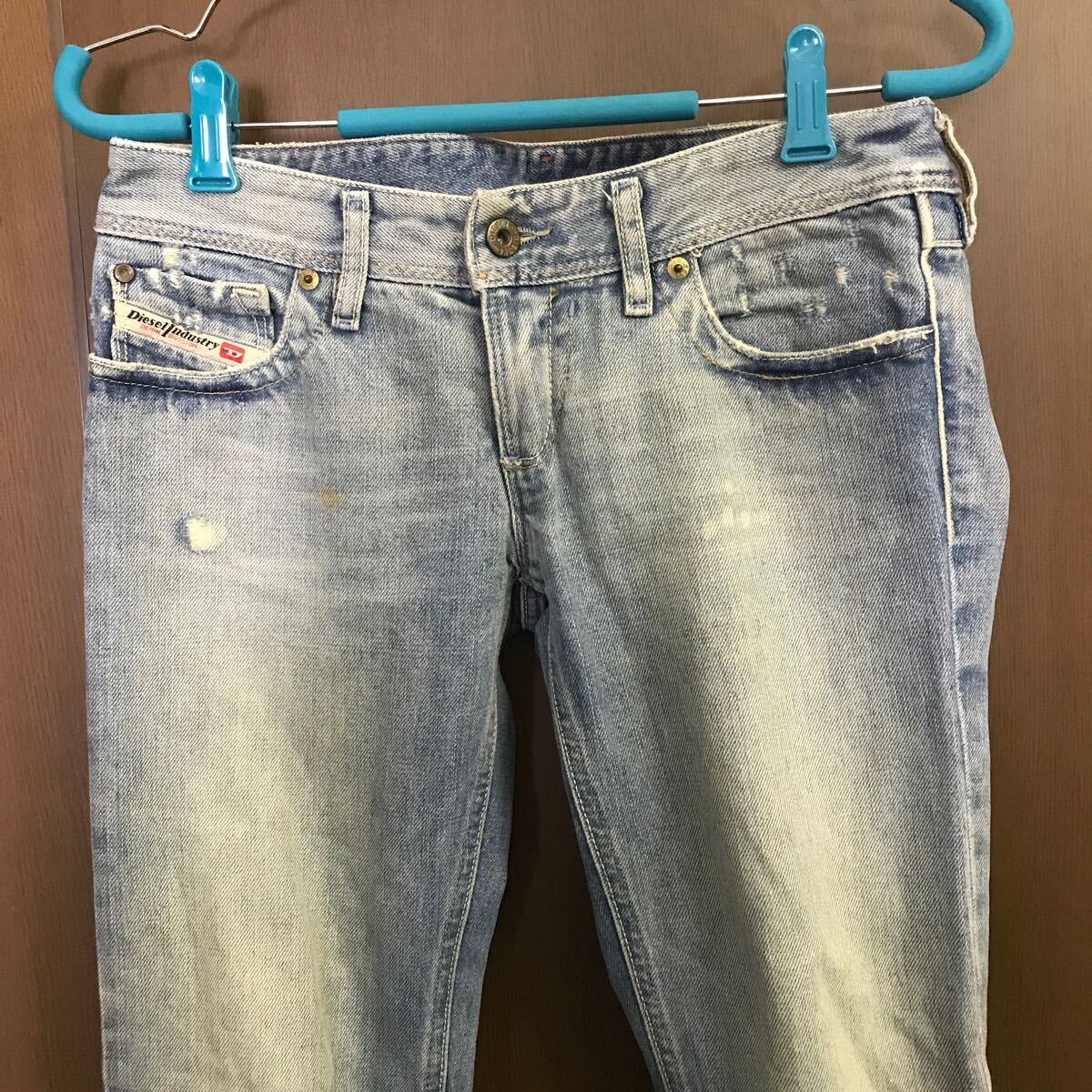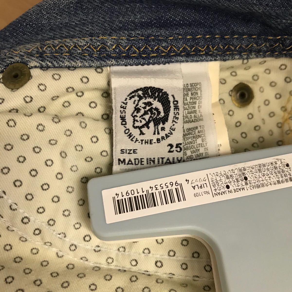 表記サイズは25。実測値は平置きでウエスト36cm、ヒップ43cm、股上18cm、股下67cm、裾幅16cm。
