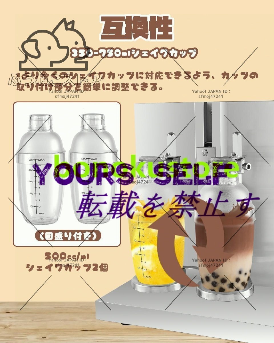 品質保証 電動ミルクティーシェーカーマシン ミキシング ステンレス 2つのシェイクカップ付き 業務用 喫茶店/バー/飲食店に適用 110V F986