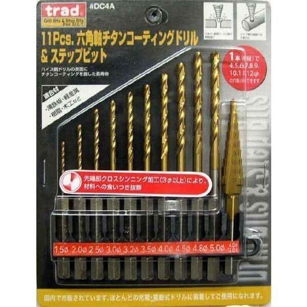 ☆クリックポスト・メール便 送料無料☆ 6角軸チタンコーティングドリル&ステップビット DC4A ※000092