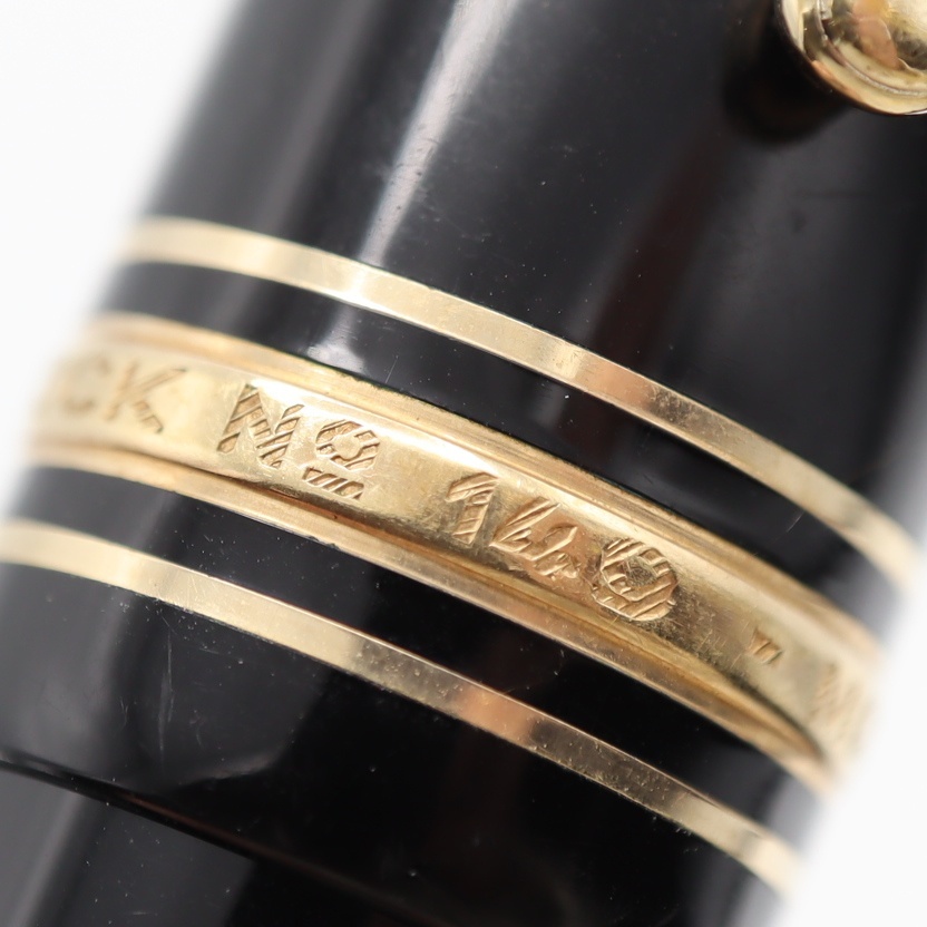 モンブランのマイスターシュテュック #149 万年筆です。Bランク:ペン先に小傷やインク汚れが見受けられます。インクがないため筆記確認は行えておりません。現状でのお渡しになりますので、修理やメンテナンスが必要になった場合はお客様負担となります。ご了承いただける方のみご購入をお願いいたします。 |