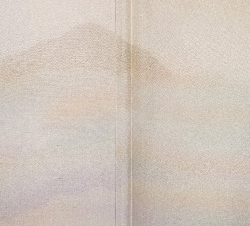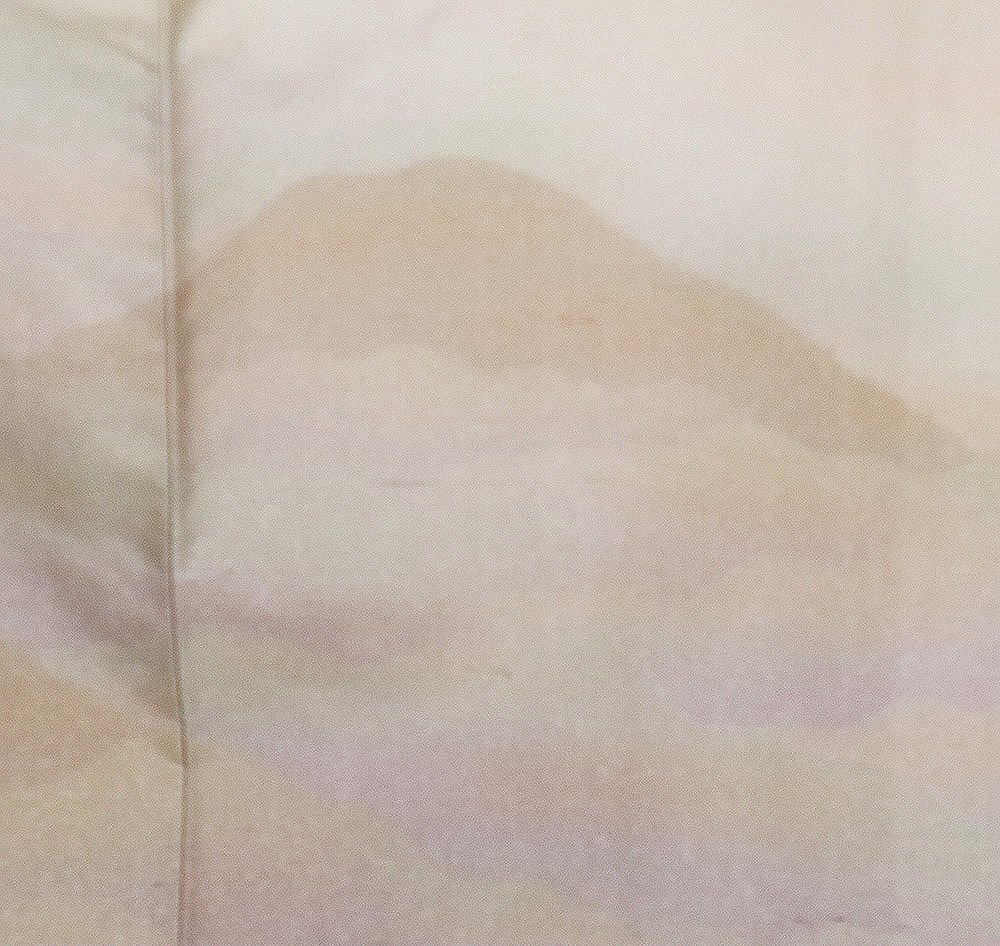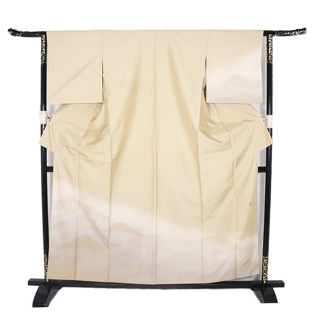 | 色・柄 | 陶流染 西村仙寿氏作 白山紬 訪問着 袷 薄茶(木蘭色)暈し地 遠山 (写真では上手く色が出ない場合があります。ご了承下さい) |