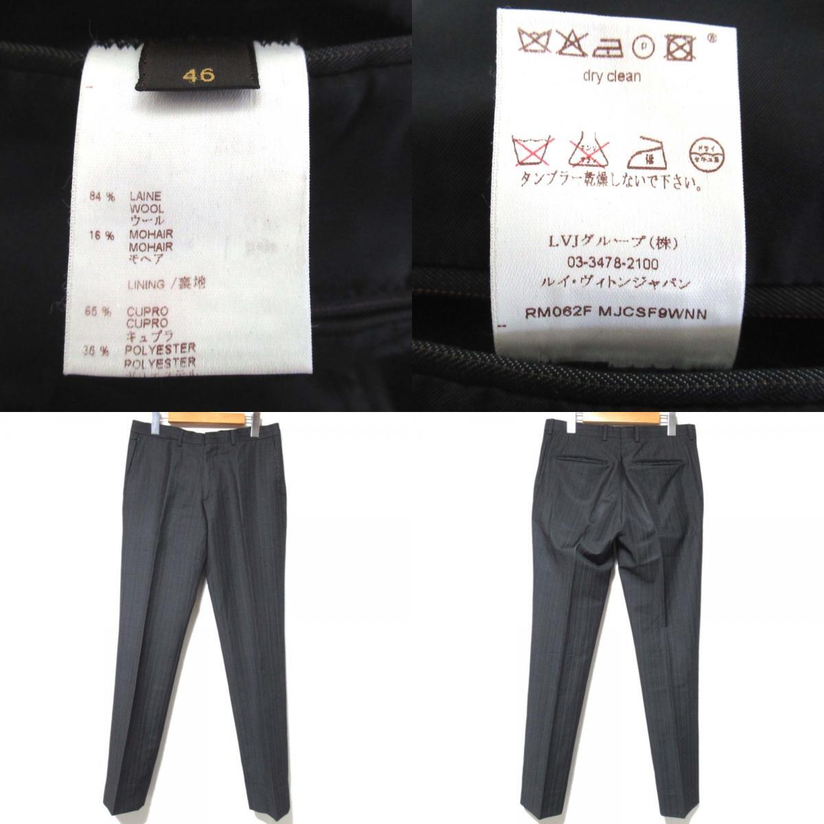 良品 LOUIS VUITTON ルイヴィトン ストライプ柄 テーラードジャケット+スラックスパンツ スーツ セットアップ 46 チャコールグレー