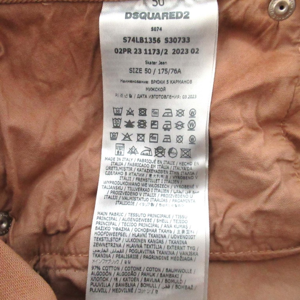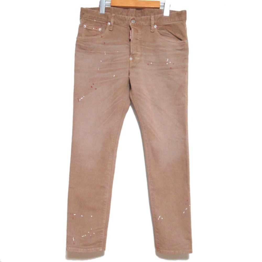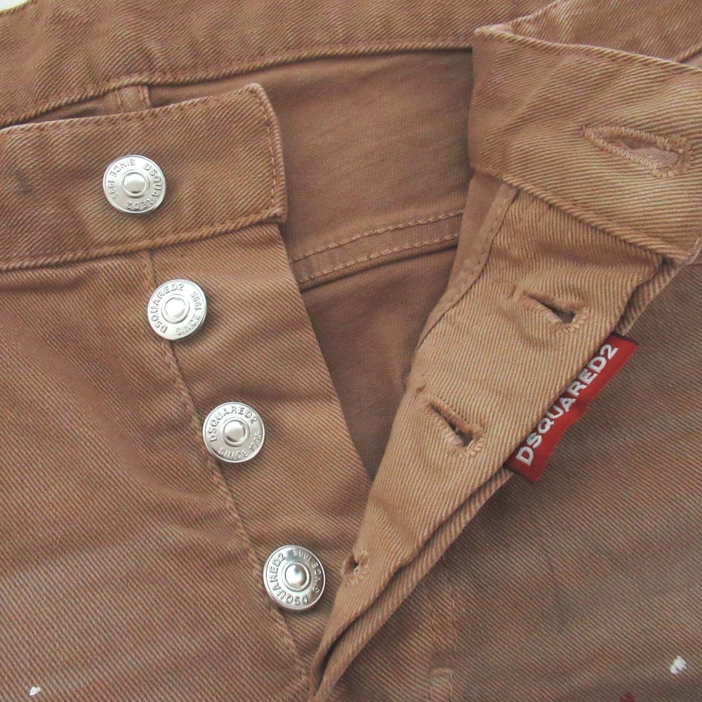 商品名:23AW DSQUARED2 ディースクエアード ペイント加工 ストレッチ ボタンフライ カラーデニムパンツ ジーンズ 50サイズ ブラウン系
