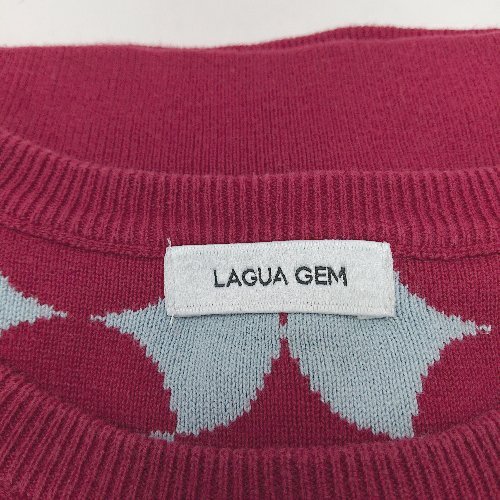 ◇ ⊇ Φ LAGUA GEM ラグア ジェム 総柄 ベスト サイズFREE グレー レッド レディース E