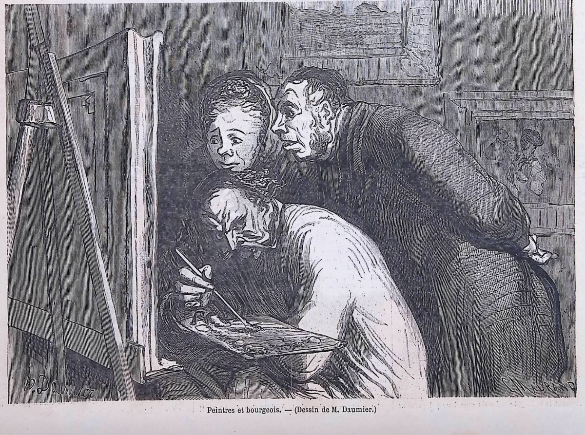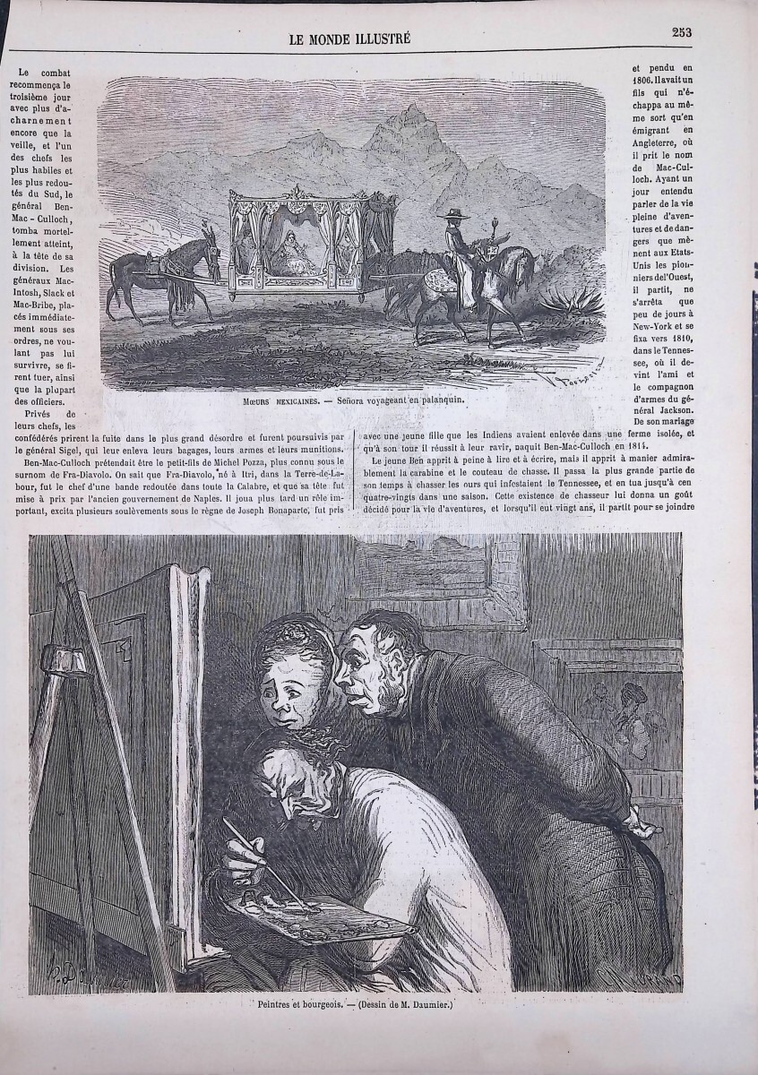 Honore Daumier の作品は、1960年代にパリで刊行される新聞に掲載されるようになります。これは、当時の新聞の一葉です。オリジナルの木口木版画です。 新聞紙のサイズは26cmx36.7cmです。その半分くらいの部分がドーミエの版画です。少し古色が出ていますが、状態は良いと思います。版上にサインがあります。ドーミエの版画のうち、新聞に掲載されたものは、殆ど残っていません。非常に珍しいものです。