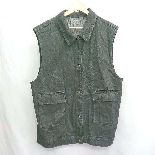 ◇ ⊇ apres jour アプレジュール デニム 袖なし ベスト サイズLL ブラック レディース E