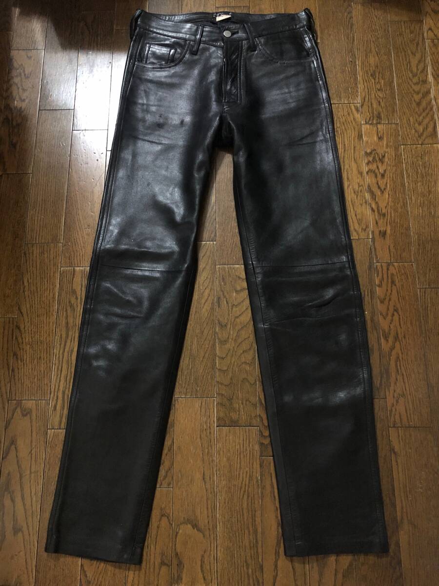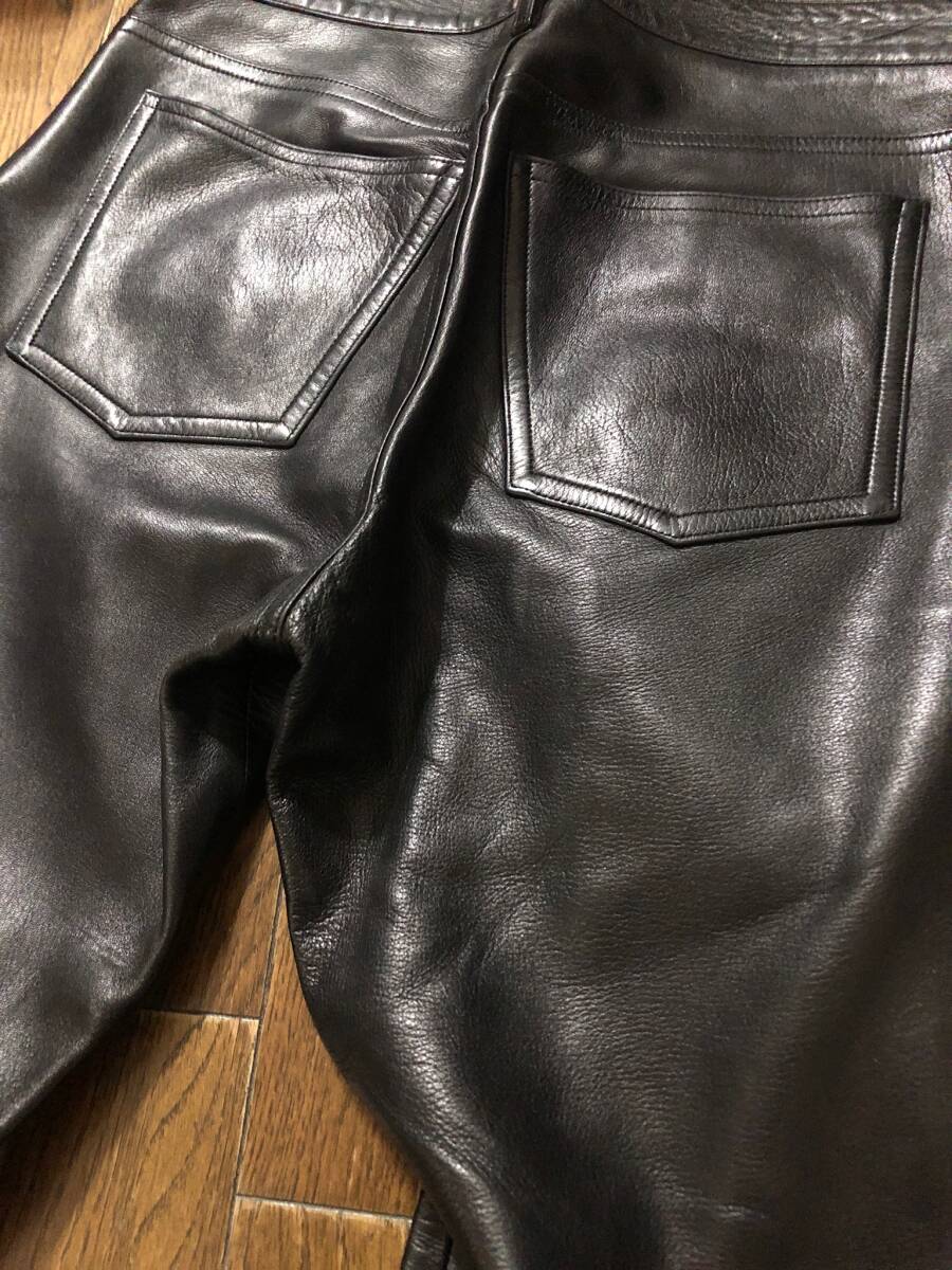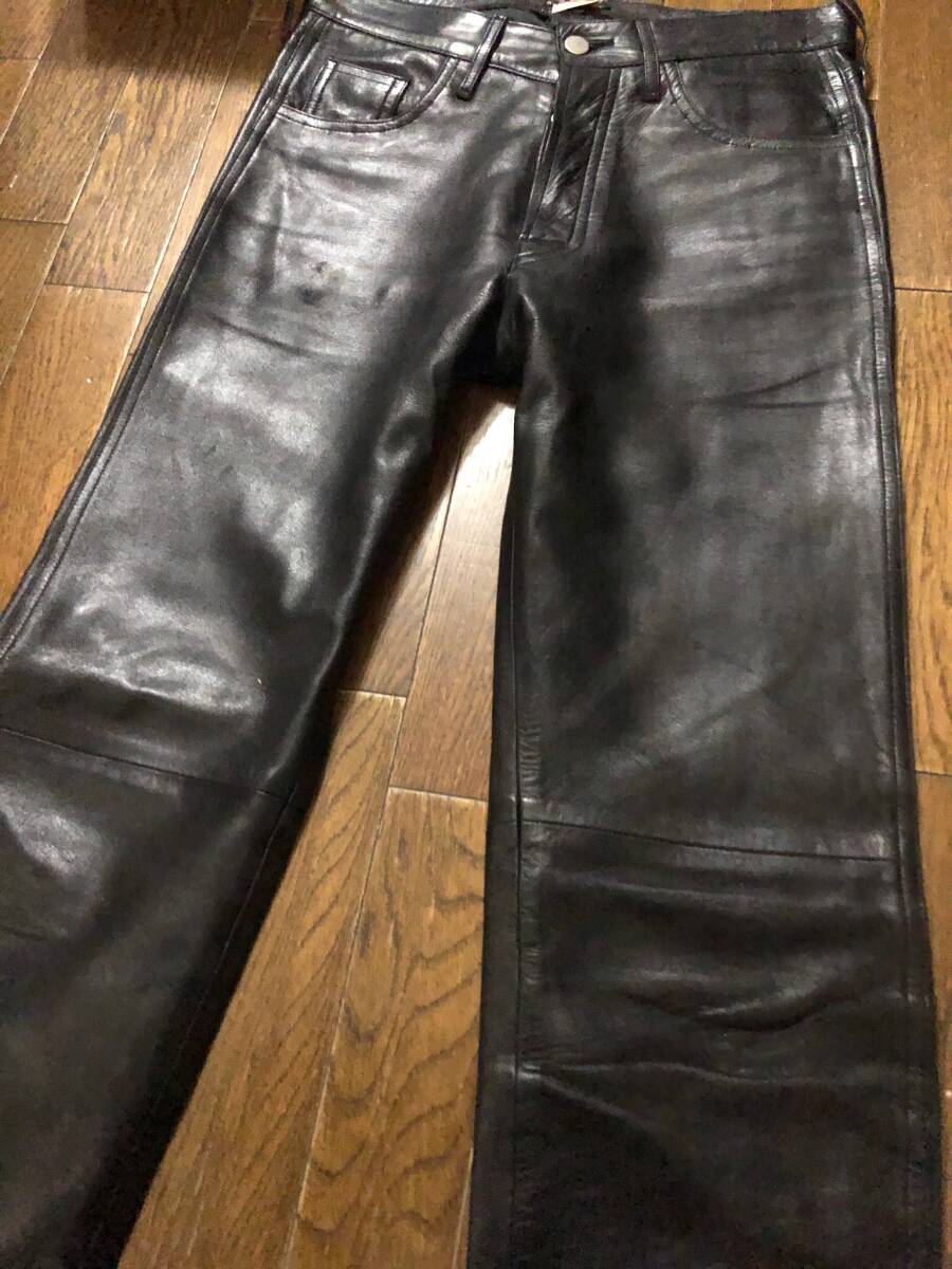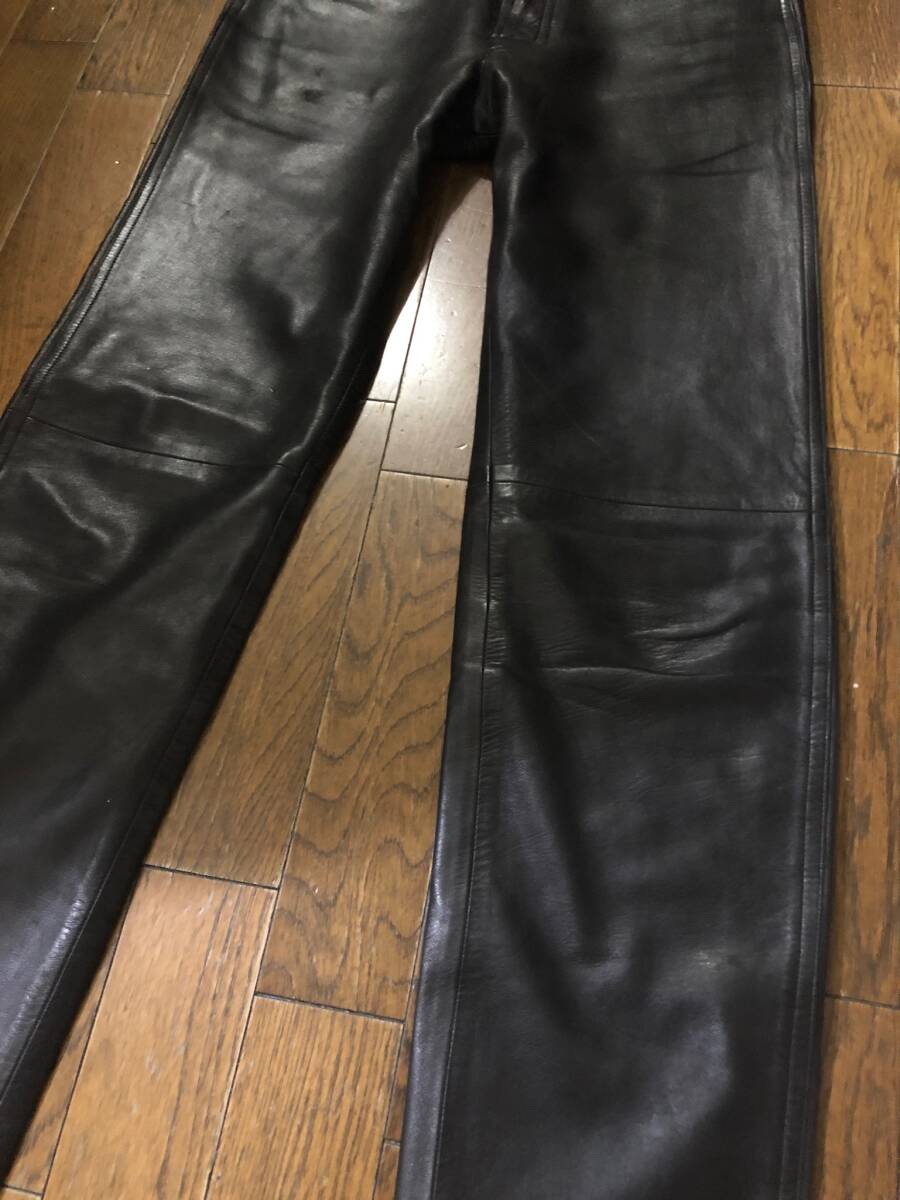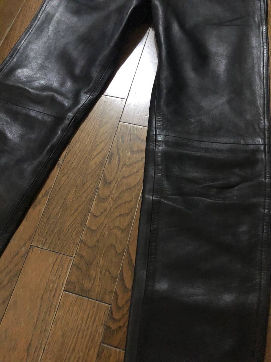 アニエスベーシープスキンレザーパンツ。正規店購入の本物です。サイズ38。アニエスベーのmade in franceのレザーパンツ、最近はなかなか良いものが出ないです。革質がかなり良く、しなやかで艶があり、他のブランドのように重く無くシルエットも綺麗でストレス無く履いて頂けると思います。ブーツだけでは無くスニーカーなども合うと思います。レザーパンツでなかなか良いものが無いのでお薦めです。当時物なのでレザー特有の着用感、しわ、スレ、傷はありますが、購入後、勿体なくあまりハードに着用していないので状態は悪くないかと思います。当時のレザーなのて元から傷などはあります。あくまで、レザー製品の当時物と踏まえてください。お店のような物を求めている方、スレや細かい汚れ傷や匂いなど細かいことが気になる方はご遠慮ください。クローゼット整理で出品しています。個人保管used商品ですのでご理解のある方ご入札お願い致します。汚れや傷がある場合があります。細かい事が気になる方、神経質な方また、臭いなど気になる方、取引を急がせる方、見落とした汚れに敏感な方はご遠慮ください。24時間以内にお返事が頂ける方、3日以内に迅速にお振込が出来る方ご入札お願い致します。あくまでも自宅保管です。すり替え防止のためノークレーム、ノーリターン、ノーキャンセルでお願いいたします。個人差がありますので状態は必ず画像をご参照ください。画像および本文の転載は固くお断りいたします。