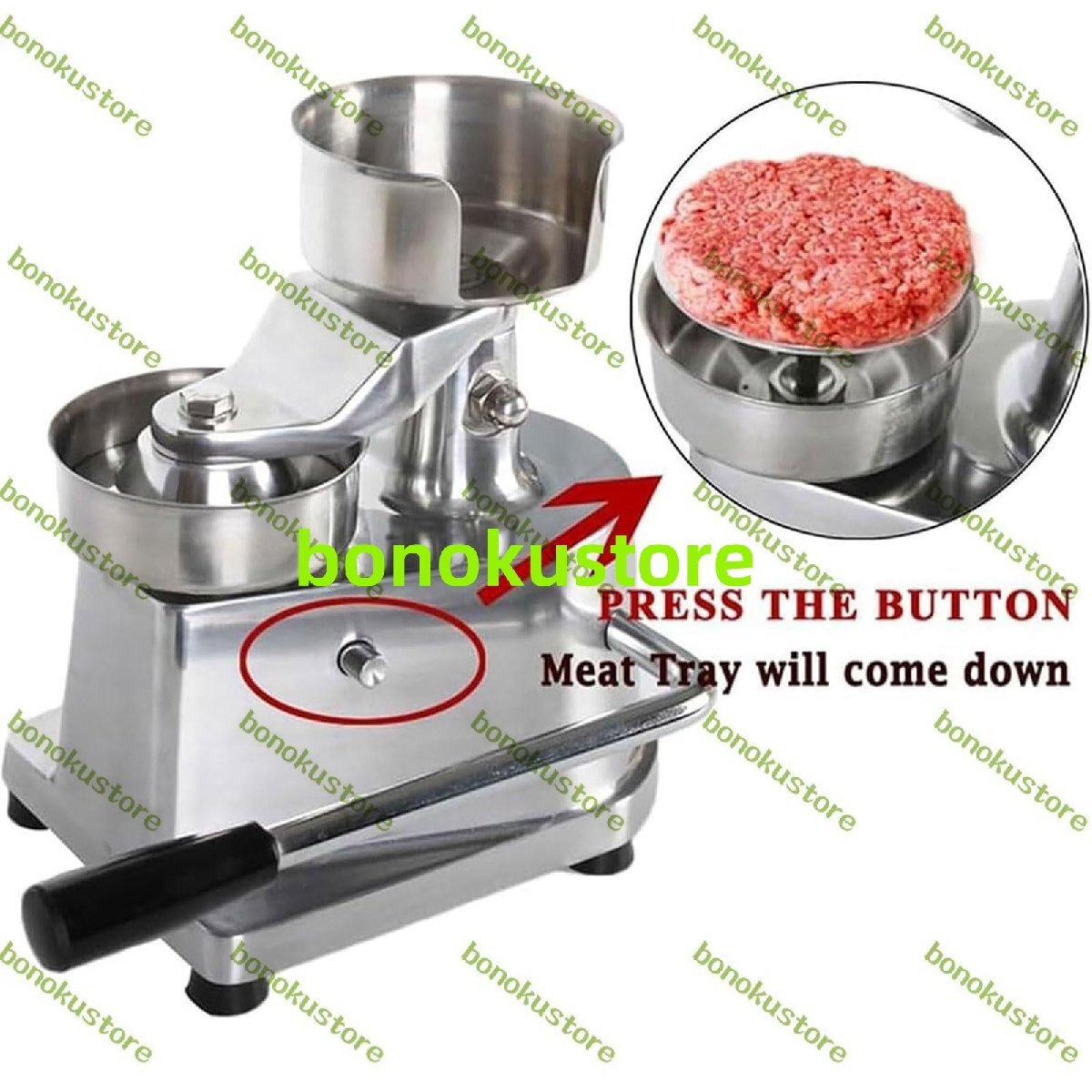 業務用ハンバーガーパティメーカー、滑り止めハンドル付き130mmステンレススチール製手動ビーフパティメーカー、プロ仕様の肉パティ成形機